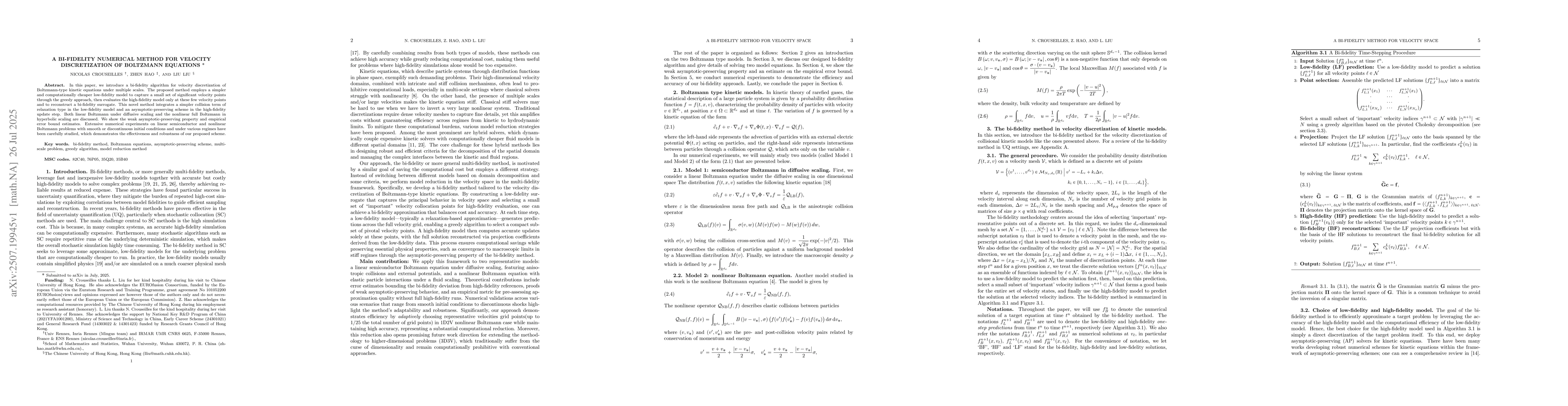 A bi-fidelity stochastic collocation method was developed for solving kinetic equations with random parameters and multiscales.