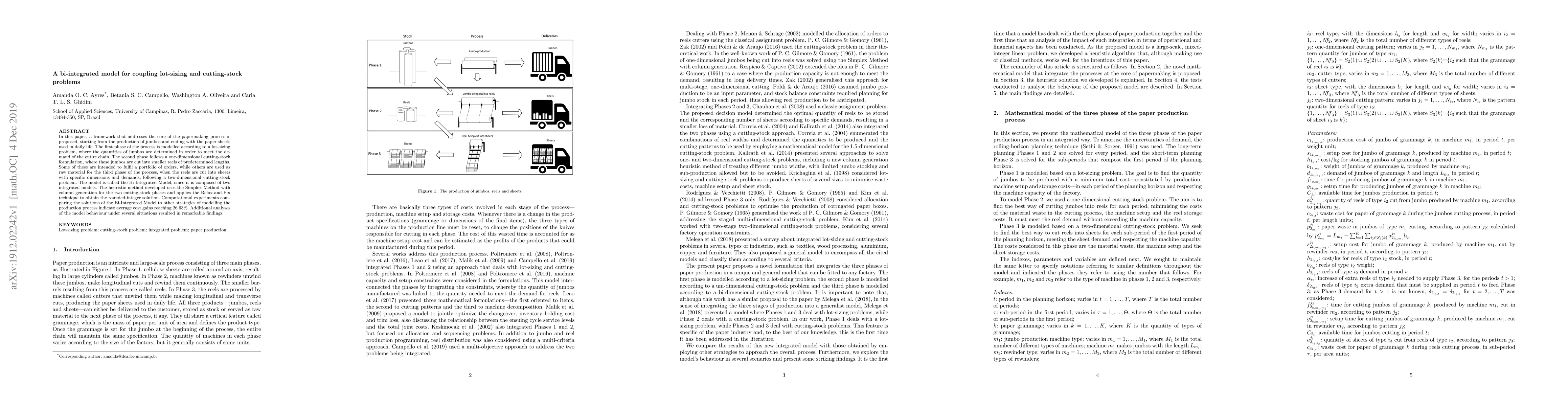 This paper proposes a Bi-Integrated Model to optimize the papermaking process, integrating lot-sizing and cutting-stock problems. The model achieves significant cost reductions, with computational experiments showing average cost gains of 26.63% compared to alternative strategies.
