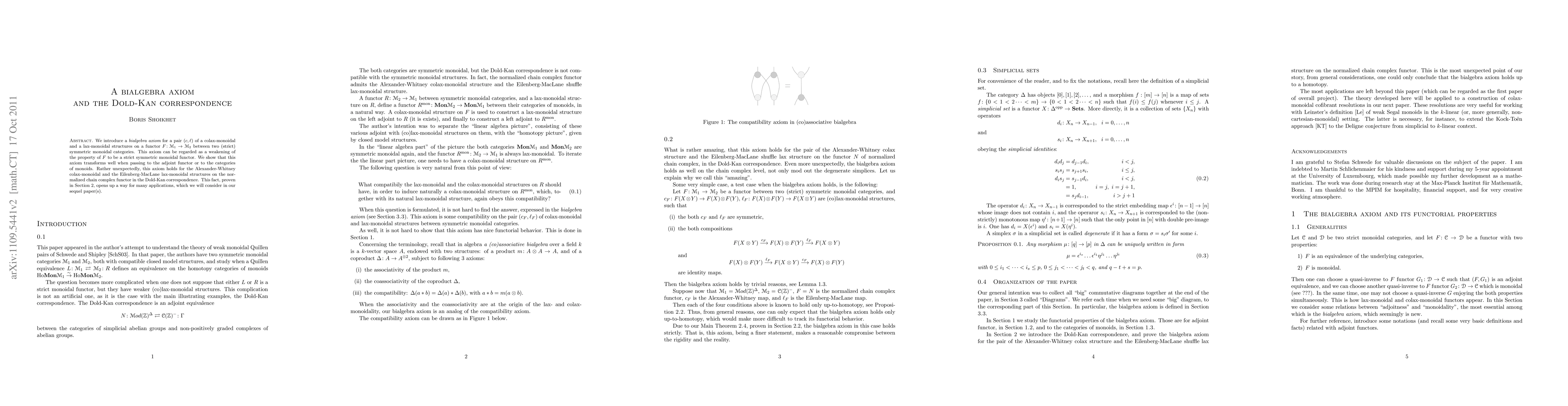 The paper presents a novel bialgebra axiom that connects colax and lax monoidal structures on functors between symmetric monoidal categories, along with proving its validity in the context of the Dold-Kan correspondence.