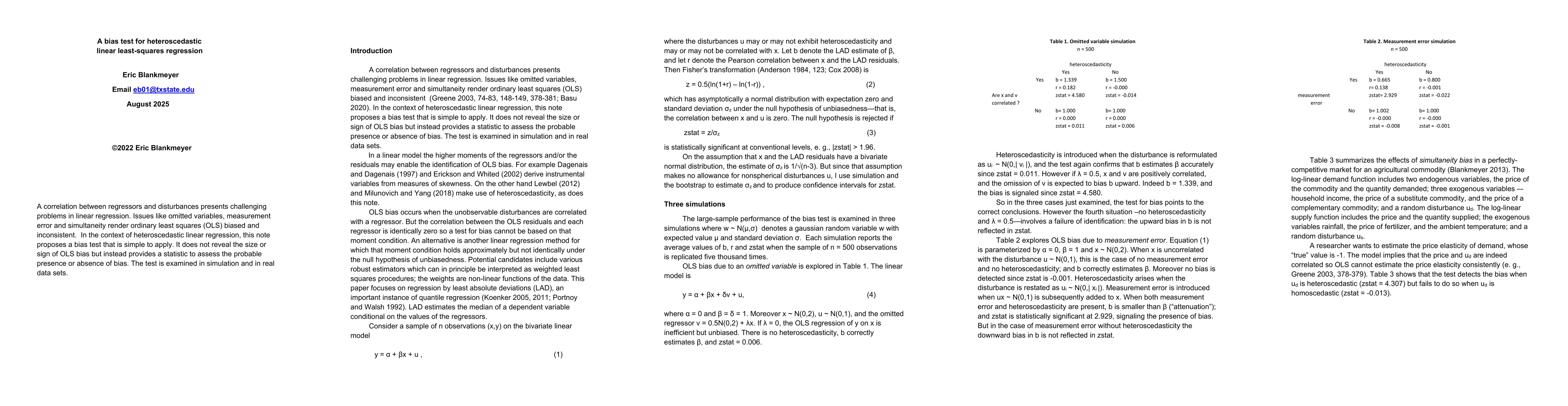 Linear least squares regression is subject to bias due to an omitted variable, a mismeasured regressor, or simultaneity. A simple test to detect the bias is proposed and explored in simulation and in real data sets.
