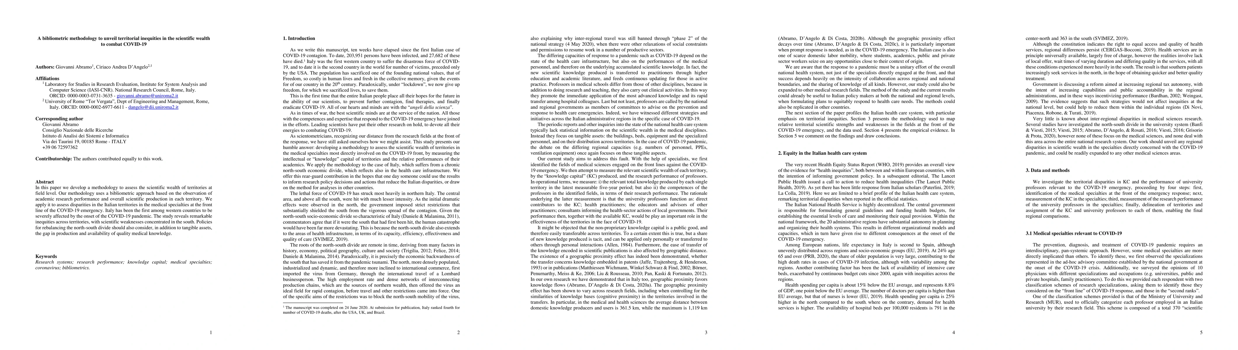 This paper introduces a bibliometric methodology to evaluate scientific wealth across Italian territories, focusing on medical specialties crucial during the COVID-19 pandemic. The study uncovers significant disparities, highlighting a north-south divide in scientific production, suggesting policy interventions to address these inequities.