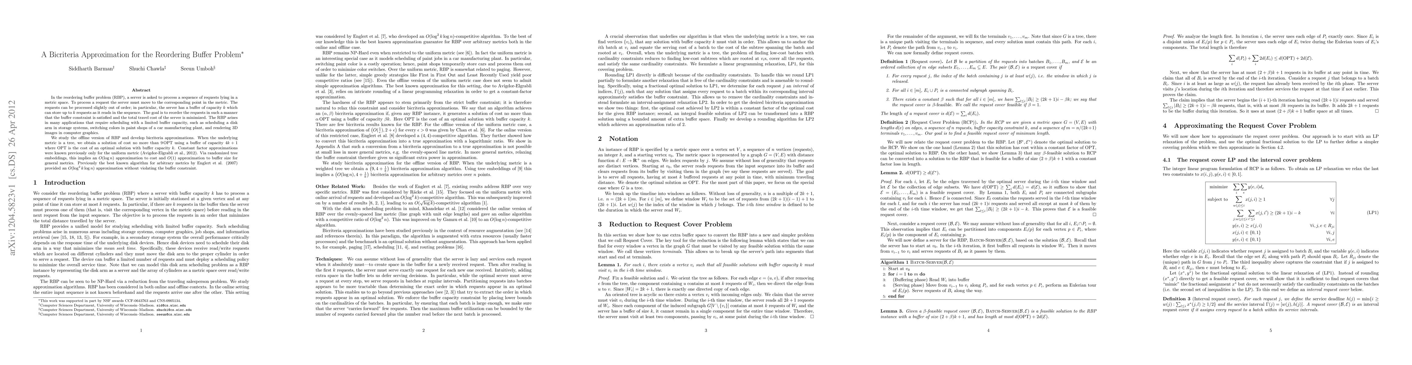 Researchers develop a new bicriteria approximation for the Reordering Buffer Problem that minimizes travel cost while satisfying buffer constraints, improving on existing algorithms for general metrics.