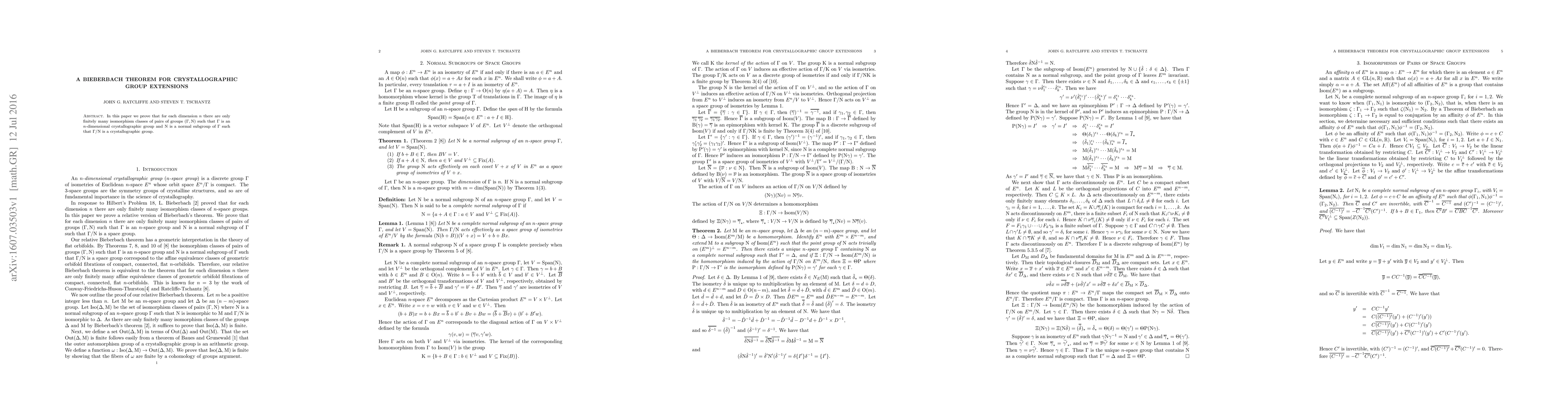 This paper proves that for each dimension n, there are only finitely many groups that can be extended to a normal subgroup resulting in another crystallographic group, providing insight into crystallographic structures.
