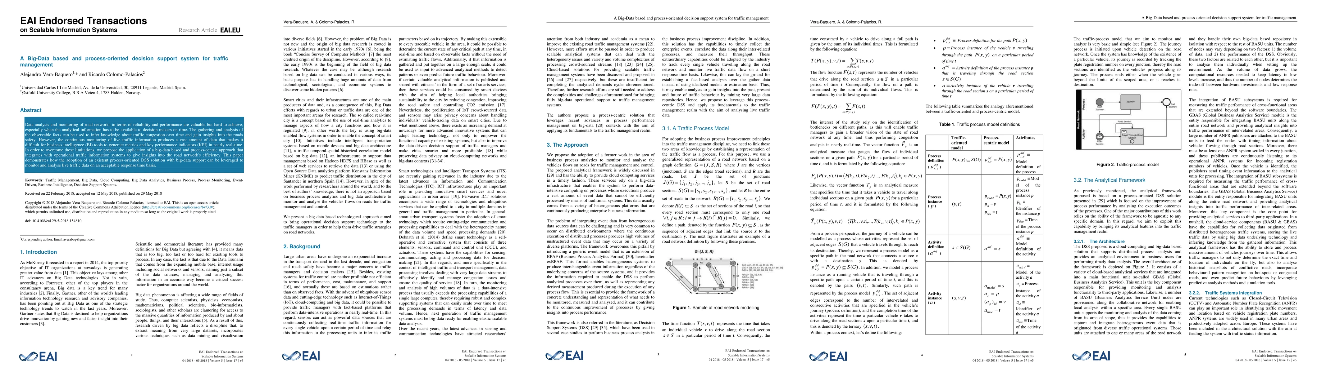 This paper proposes a big-data based, process-oriented decision support system for traffic management to analyze road network performance and reliability. It demonstrates how integrating big-data analytics with existing process-oriented DSS solutions can provide near real-time insights into traffic congestion and road safety.