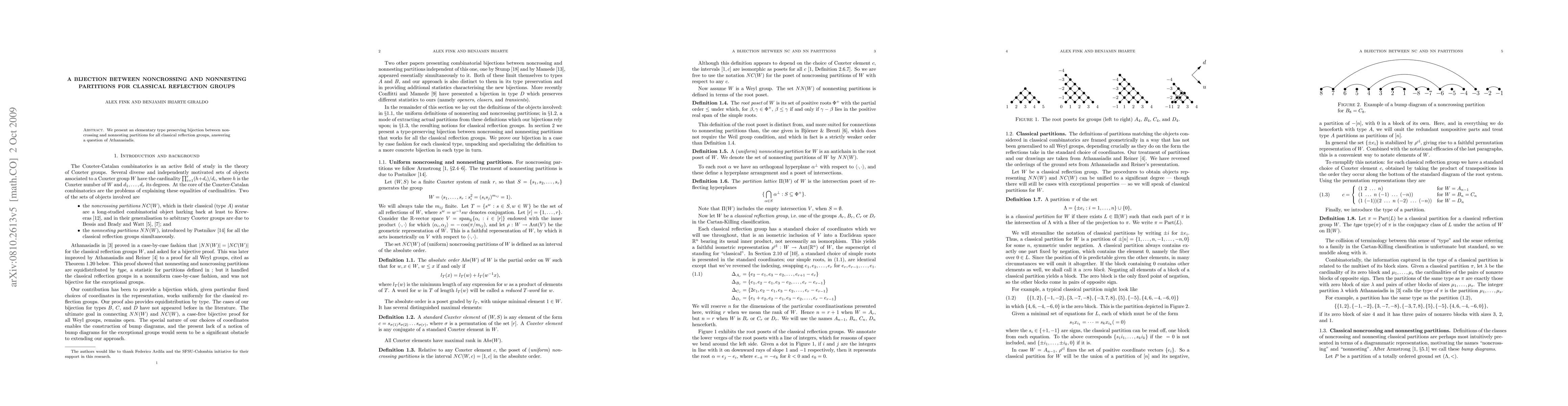 Summary: This paper establishes an elementary bijection between noncrossing and nonnesting partitions for classical reflection groups, providing a solution to a question posed by Athanasiadis. The bijection preserves the type of the reflection groups.