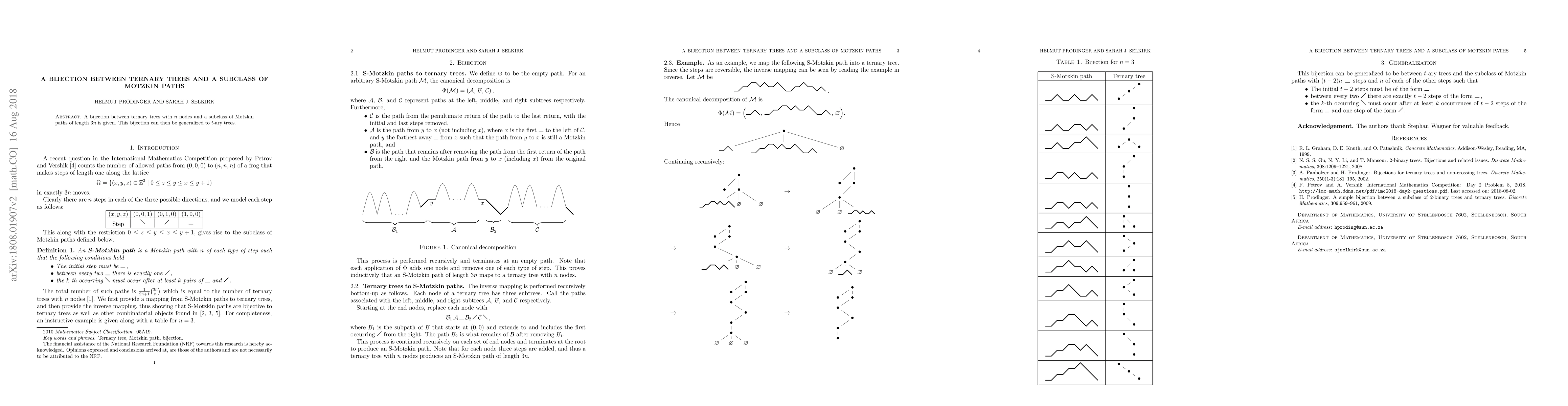 This paper establishes a bijection between ternary trees with $n$ nodes and a specific subclass of Motzkin paths of length $3n$, and extends this relationship to $t$-ary trees. The bijection provides a combinatorial link between these two structures.