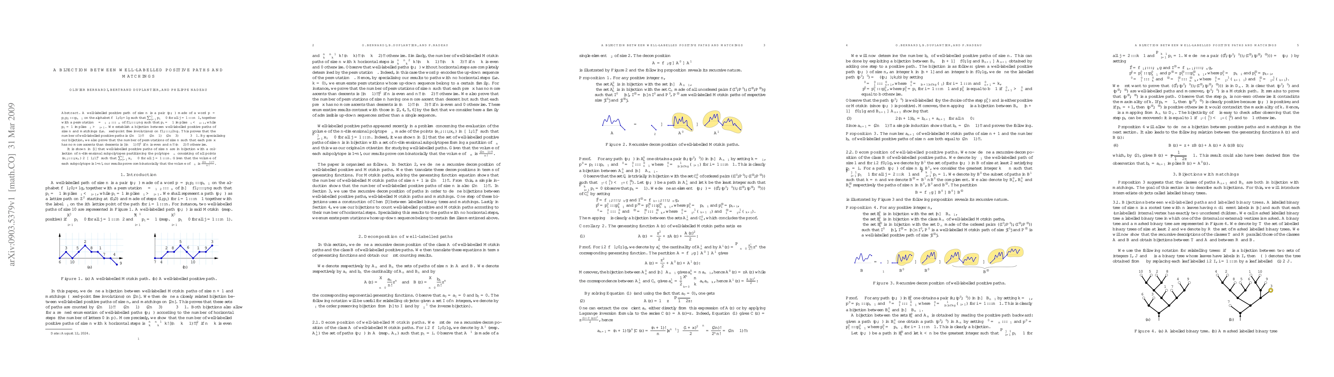 This paper establishes a bijection between well-labelled positive paths and matchings, proving that the number of such paths is (2n-1)!!. It also deduces the number of specific permutations and the volume of a particular n-dimensional polytope.