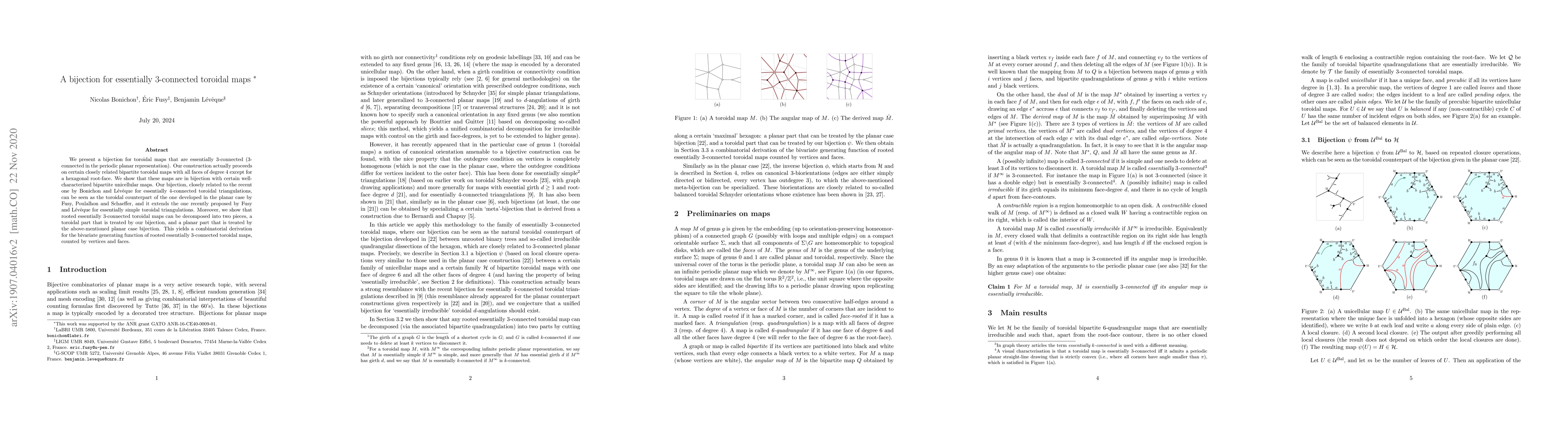 This paper establishes a bijection between essentially $3$-connected toroidal maps and specific well-characterized bipartite unicellular maps, extending previous results for $4$-connected and simple toroidal maps. The decomposition of rooted essentially $3$-connected toroidal maps into toroidal and planar parts enables the derivation of their combinatorial generating function.