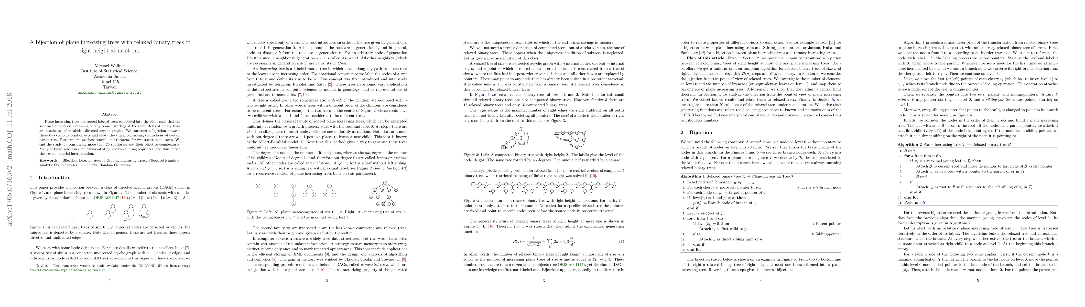 This paper establishes a bijection between plane increasing trees and relaxed binary trees of right height at most one, revealing connections in parameters and statistics related to leaves. It also explores the combinatorial interpretation of various subclasses, utilizing known counting sequences.