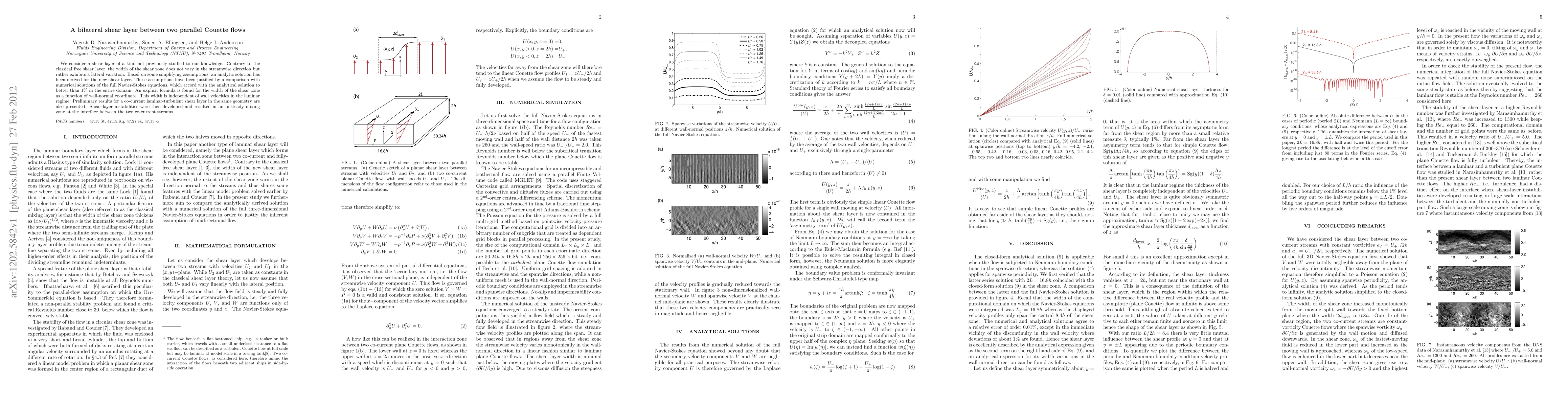 We consider a shear layer of a kind not previously studied to our knowledge. Contrary to the classical free shear layer, the width of the shear zone does not vary in the streamwise direction but rather exhibits a lateral variation. Based on some simplifying assumptions, an analytic solution has been derived for the new shear layer. These assumptions have been justified by a comparison with numerical solutions of the full Navier-Stokes equations, which accord with the analytical solution to better than 1% in the entire domain. An explicit formula is found for the width of the shear zone as a function of wall-normal coordinate. This width is independent of wall velocities in the laminar regime. Preliminary results for a co-current laminar-turbulent shear layer in the same geometry are also presented. Shear-layer instabilities were then developed and resulted in an unsteady mixing zone at the interface between the two co-current streams.