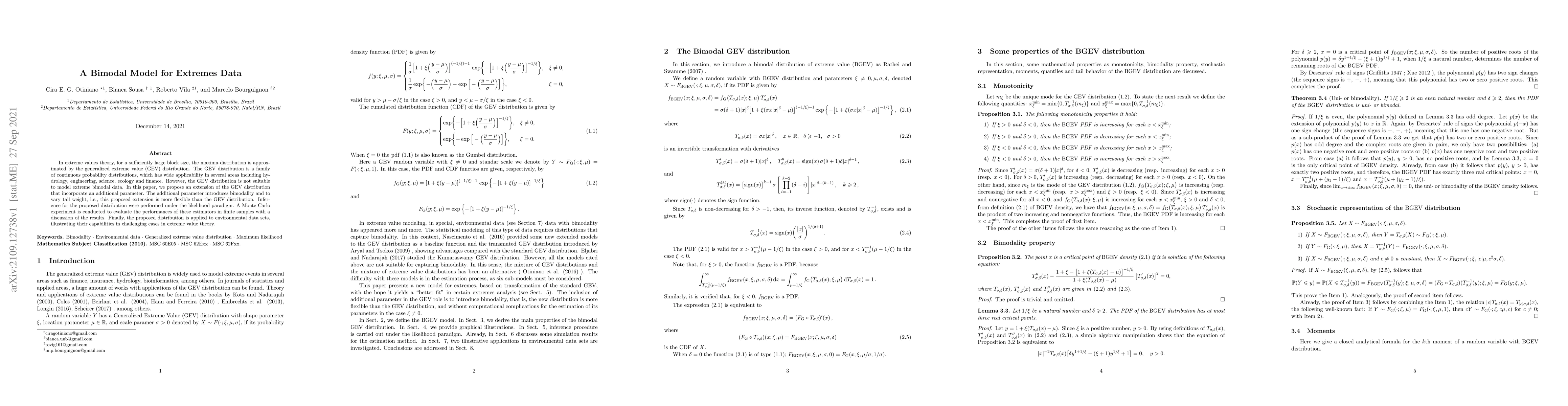 A new bimodal model is proposed to extend the generalized extreme value distribution, which can handle extreme bimodal data with varying tail weights, improving its flexibility over the original GEV distribution.