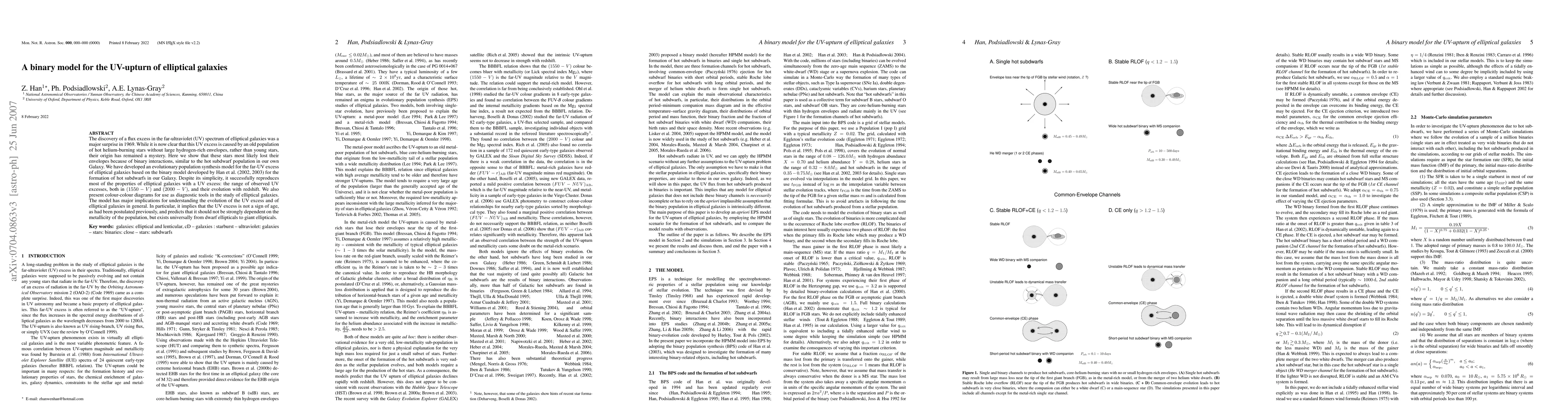 This paper proposes a binary model to explain the UV excess in elliptical galaxies, attributing it to hot helium-burning stars formed through binary interactions. The developed evolutionary population synthesis model, based on the binary model for hot subdwarfs, successfully reproduces observed UV excess properties and suggests the UV excess is universal across elliptical galaxies, not dependent on age or metallicity.