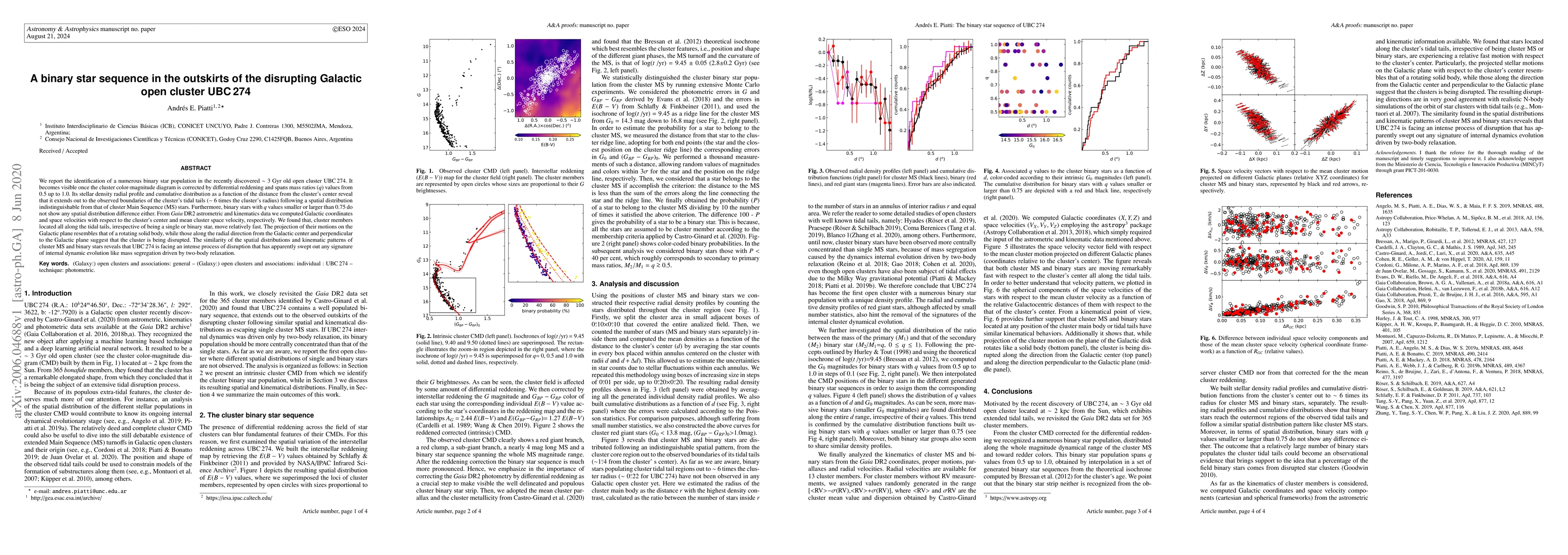 The paper identifies a significant binary star population in the ~3 Gyr old open cluster UBC 274, which extends into the cluster's tidal tails. The binary stars exhibit similar spatial distributions and kinematic patterns as single stars, indicating the cluster is undergoing intense disruption, erasing internal dynamic evolution signatures.