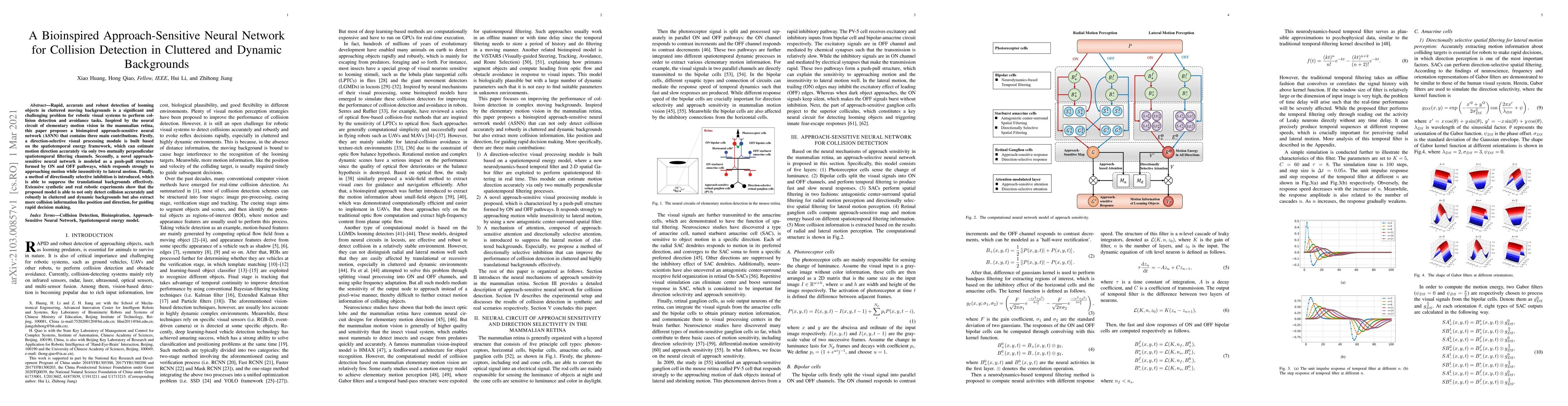 This paper proposes a bioinspired approach-sensitive neural network (ASNN) for detecting looming objects in cluttered and dynamic environments. The ASNN features a direction-selective visual processing module, an approach-sensitive neural network, and directionally selective inhibition to accurately detect collisions and suppress background noise.