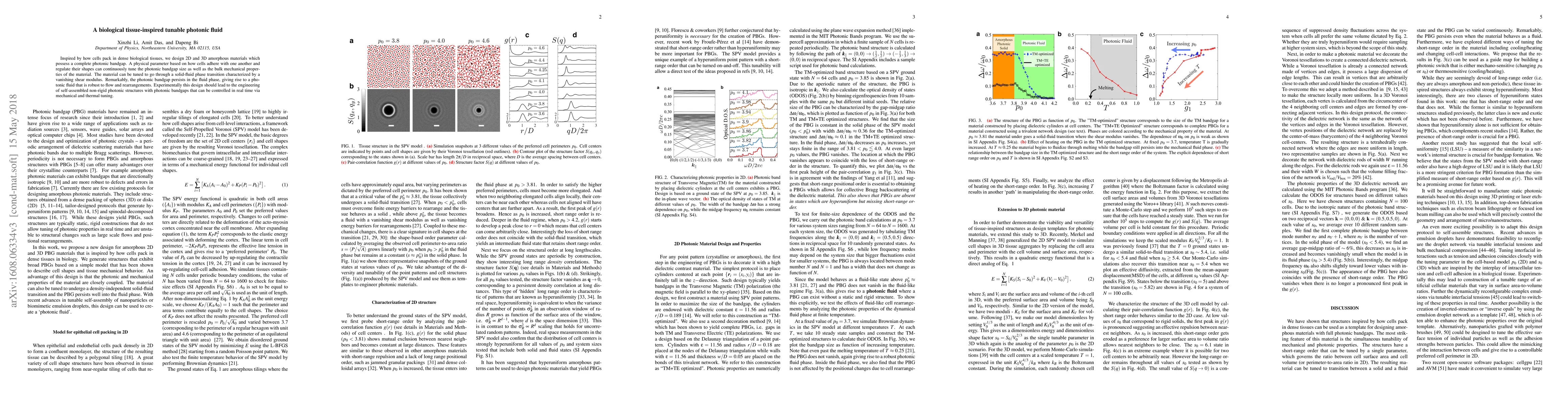 The research designs amorphous materials with tunable photonic band gaps inspired by biological tissues, where mechanical and thermal tuning can control the photonic properties and induce a solid-fluid phase transition while maintaining photonic band gap functionality in the fluid phase. This tunable photonic fluid could enable real-time control of self-assembled non-rigid photonic structures.