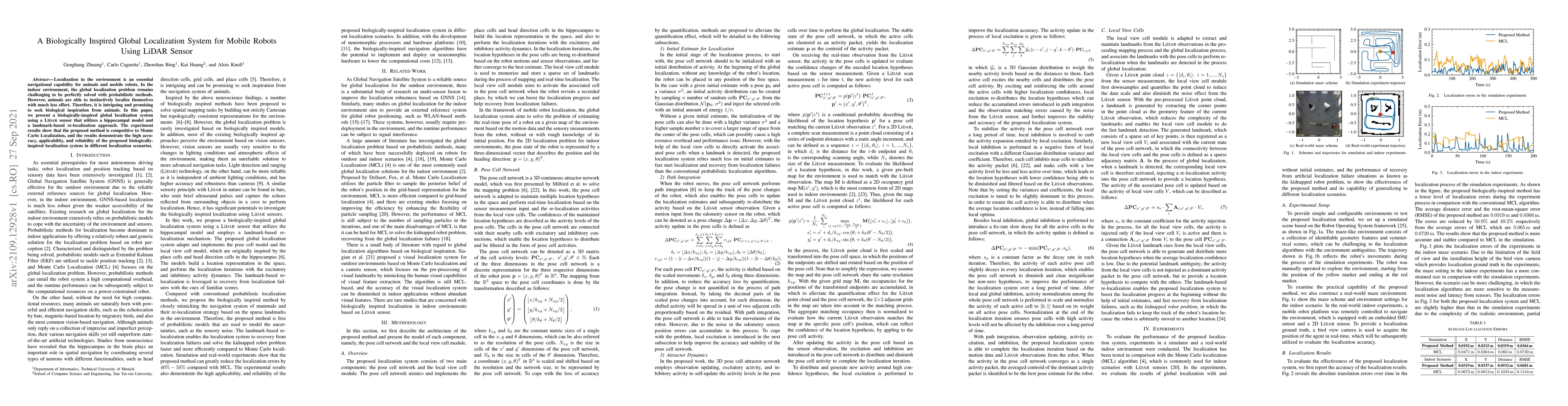 This paper introduces a biologically-inspired global localization system for mobile robots using a LiDAR sensor, inspired by the animal brain's hippocampal model and landmark-based re-localization. Experimental results indicate the method's high accuracy, applicability, and reliability, rivaling traditional Monte Carlo Localization.