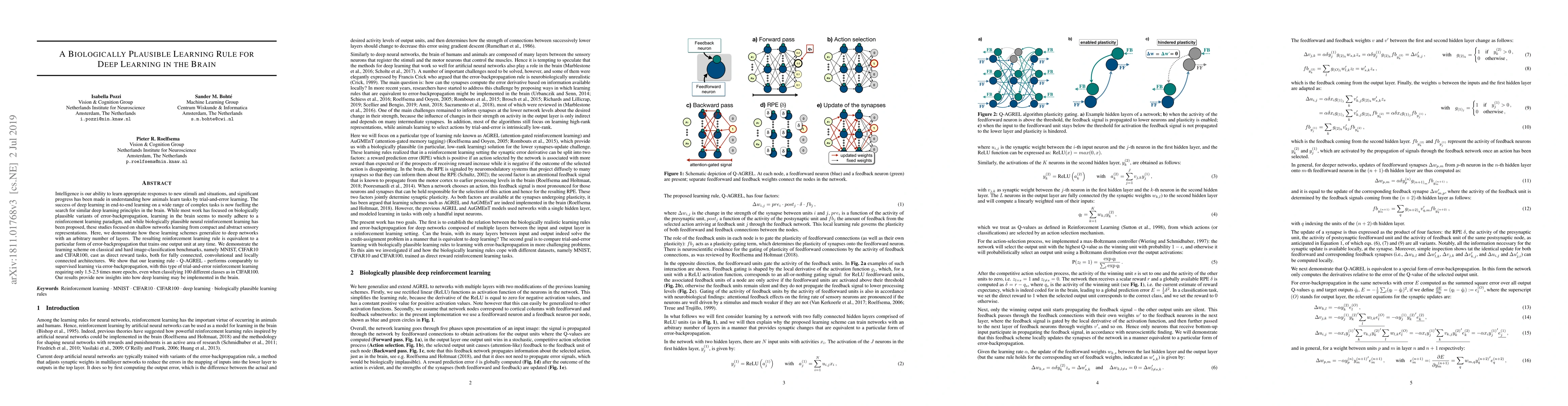 This paper proposes a biologically plausible learning rule, Q-AGREL, for deep neural networks, demonstrating its effectiveness on image classification tasks like MNIST, CIFAR10, and CIFAR100. The rule performs comparably to supervised learning, requiring only slightly more epochs, suggesting it can handle complex tasks and deep networks.