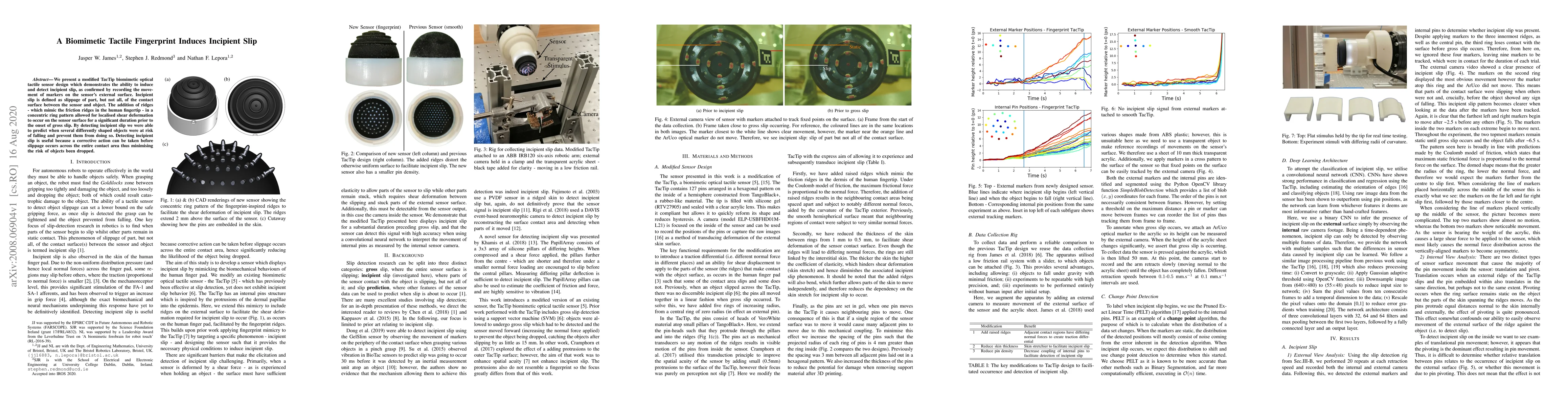 This paper introduces a biomimetic tactile sensor with ridges mimicking human fingertip friction ridges, which can detect incipient slip—partial surface slippage—allowing for predictive actions to prevent object drops. The design successfully predicts and prevents gross slip by detecting localised shear deformation.