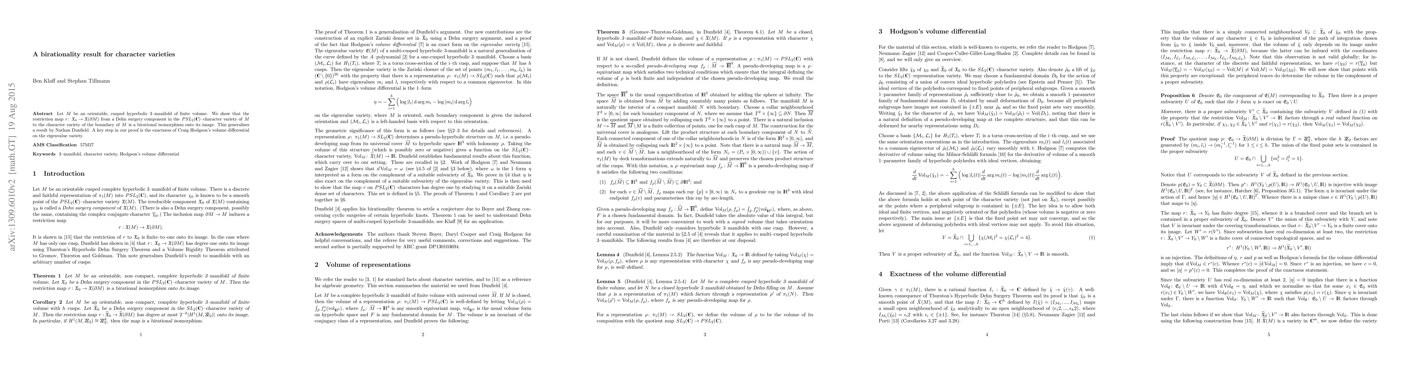 Let M be an orientable, cusped hyperbolic 3-manifold of finite volume. We show that the restriction map from a Dehn surgery component in the PSL(2,C)-character variety of M to the character variety of the boundary of M is a birational isomorphism onto its image. This generalises a result by Nathan Dunfield. A key step in our proof is the exactness of Craig Hodgson's volume differential on the eigenvalue variety.