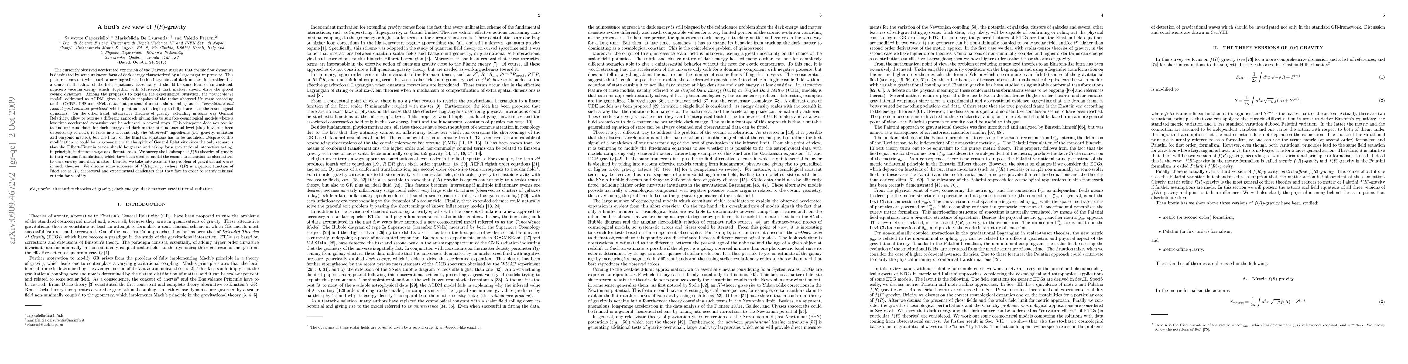 We survey the landscape of $f(R)$ theories of gravity in their various formulations, which have been used to model the cosmic acceleration as alternatives to dark energy and dark matter. Besides, we take into account the problem of gravitational waves in such theories. We discuss some successes of $f(R)$-gravity (where $f(R)$ is a generic function of Ricci scalar $R$), theoretical and experimental challenges that they face in order to satisfy minimal criteria for viability.