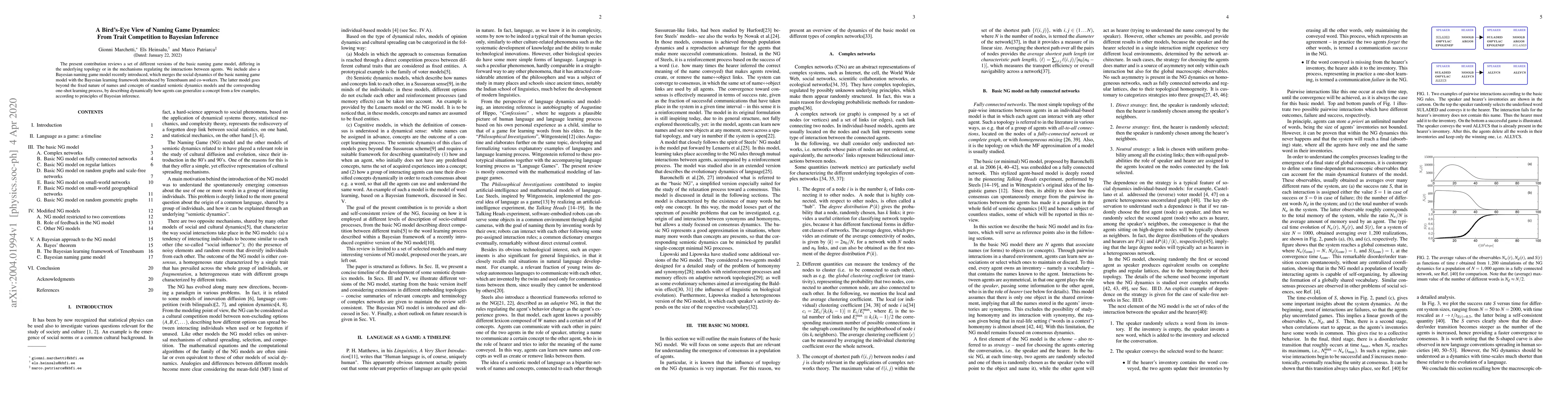 This paper reviews various versions of the naming game model, highlighting differences in social dynamics and interaction mechanisms. It introduces a Bayesian model that integrates social dynamics with Bayesian learning, allowing agents to generalize concepts through Bayesian inference rather than relying on fixed names and one-shot learning.