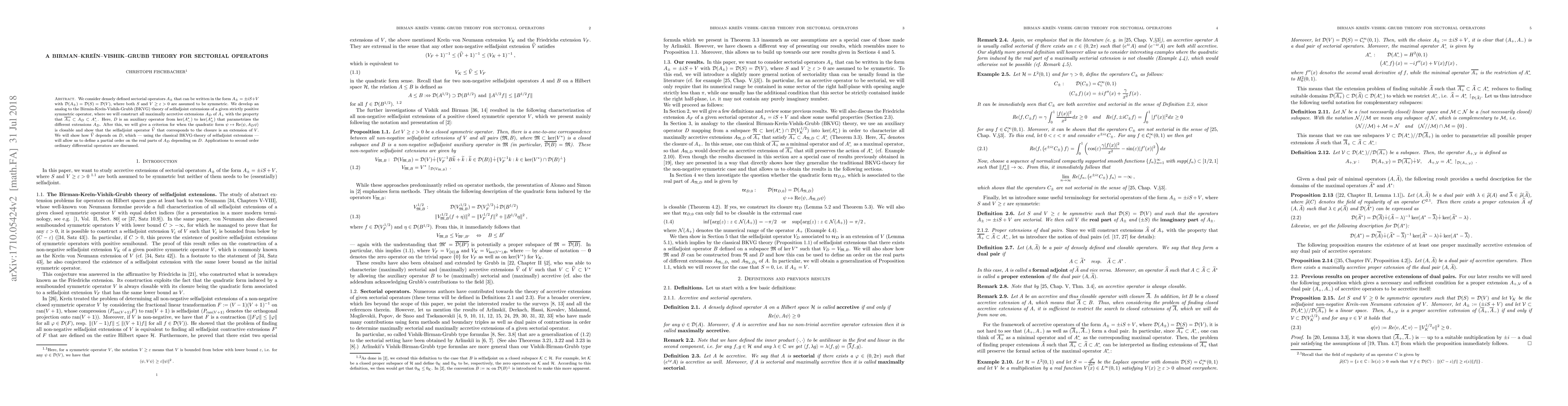 Researchers develop a Birman-Krein-Vishik-Grubb theory for sectorial operators, creating a framework to construct maximally accretive extensions of symmetric operators, with implications for ordinary differential operators.