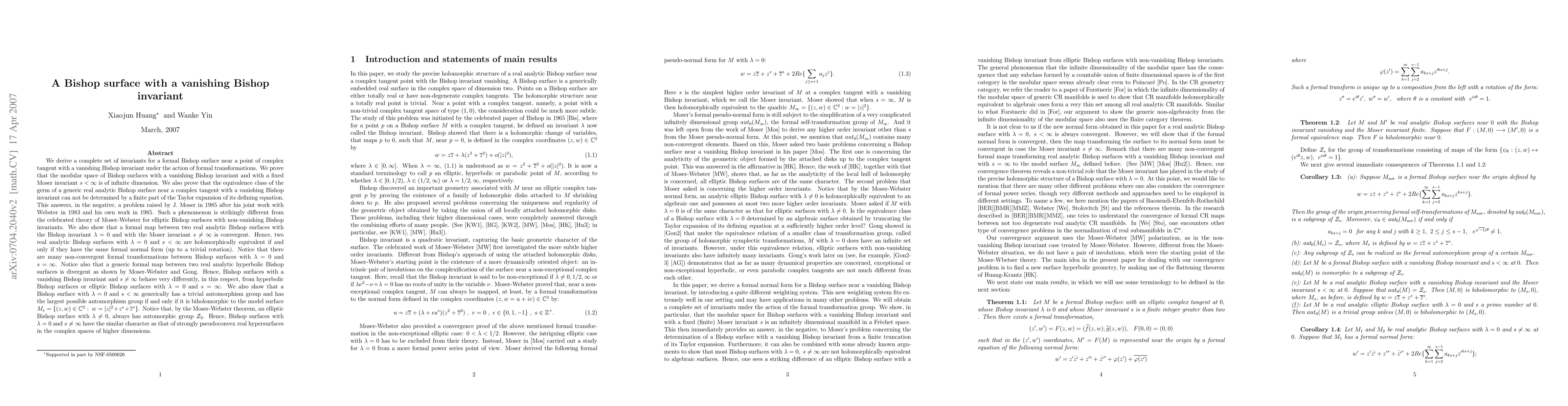 This paper establishes a complete set of invariants for Bishop surfaces near complex tangents with a vanishing Bishop invariant, proving that the modular space of such surfaces is infinitely dimensional. It also shows that the equivalence class of a generic real analytic Bishop surface cannot be determined by a finite Taylor expansion, answering a 1985 question posed by J. Moser.