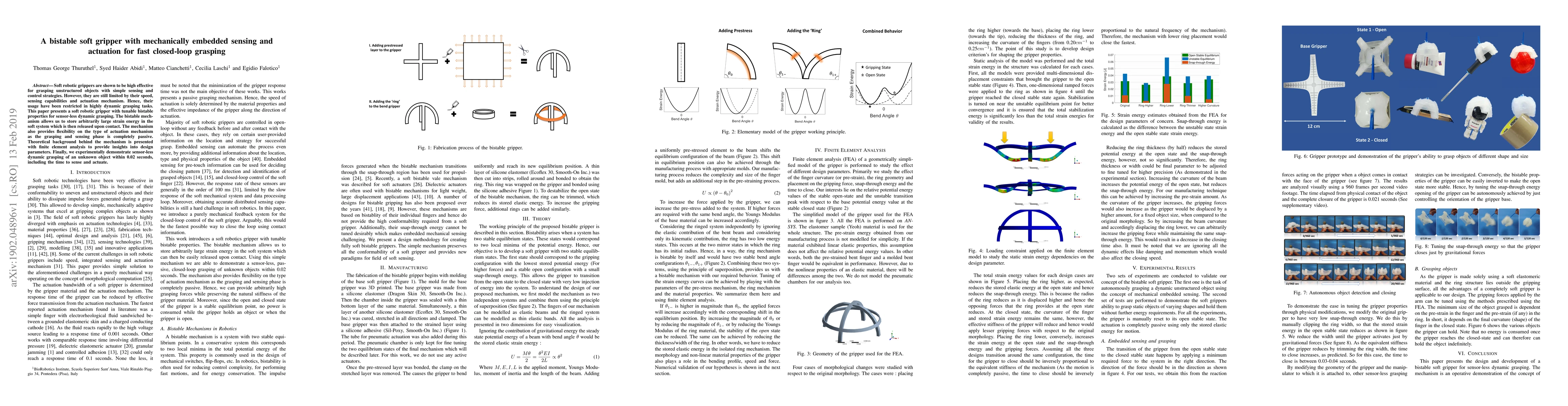 This paper introduces a bistable soft gripper that combines mechanical sensing and actuation for rapid closed-loop grasping. The bistable mechanism enables the storage of large strain energy, facilitating fast, passive grasping and sensing, demonstrated through dynamic grasping of unknown objects in under 0.02 seconds.