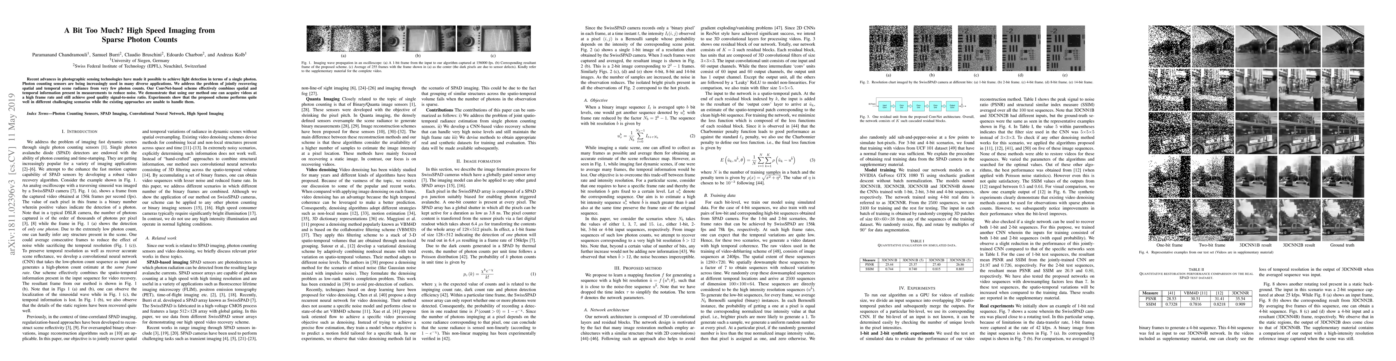 Recent advances in photographic sensing technologies have made it possible to achieve light detection in terms of a single photon. Photon counting sensors are being increasingly used in many diverse applications. We address the problem of jointly recovering spatial and temporal scene radiance from very few photon counts. Our ConvNet-based scheme effectively combines spatial and temporal information present in measurements to reduce noise. We demonstrate that using our method one can acquire videos at a high frame rate and still achieve good quality signal-to-noise ratio. Experiments show that the proposed scheme performs quite well in different challenging scenarios while the existing approaches are unable to handle them.