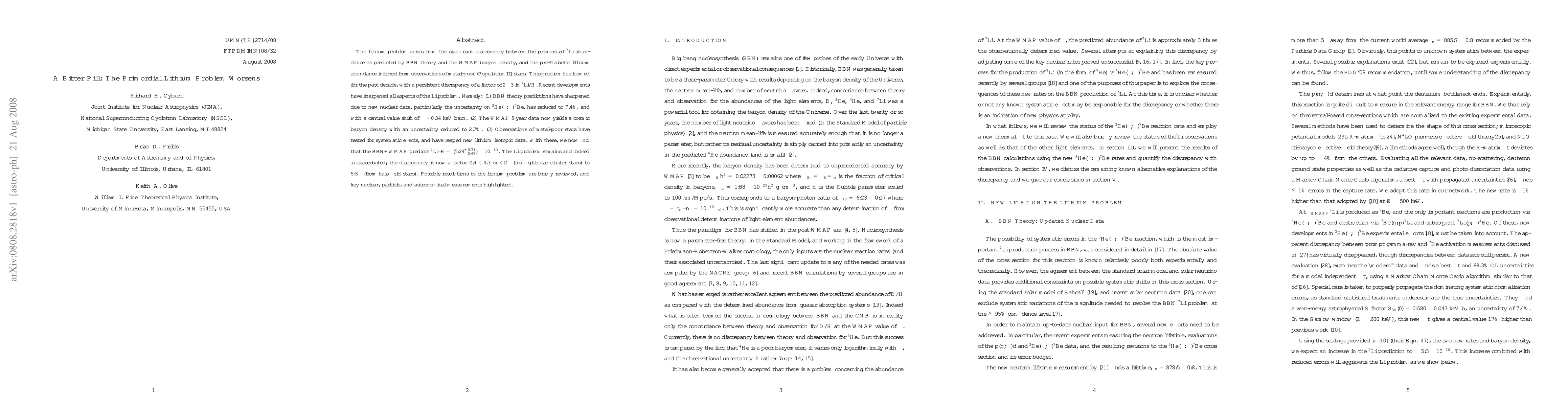 The lithium problem arises from the significant discrepancy between the primordial 7Li abundance as predicted by BBN theory and the WMAP baryon density, and the pre-Galactic lithium abundance inferred from observations of metal-poor (Population II) stars. This problem has loomed for the past decade, with a persistent discrepancy of a factor of 2--3 in 7Li/H. Recent developments have sharpened all aspects of the Li problem. Namely: (1) BBN theory predictions have sharpened due to new nuclear data, particularly the uncertainty on 3He(alpha,gamma)7Be, has reduced to 7.4%, and with a central value shift of ~ +0.04 keV barn. (2) The WMAP 5-year data now yields a cosmic baryon density with an uncertainty reduced to 2.7%. (3) Observations of metal-poor stars have tested for systematic effects, and have reaped new lithium isotopic data. With these, we now find that the BBN+WMAP predicts 7Li/H = (5.24+0.71-0.67) 10^{-10}. The Li problem remains and indeed is exacerbated; the discrepancy is now a factor 2.4--4.3 or 4.2sigma (from globular cluster stars) to 5.3sigma (from halo field stars). Possible resolutions to the lithium problem are briefly reviewed, and key nuclear, particle, and astronomical measurements highlighted.
