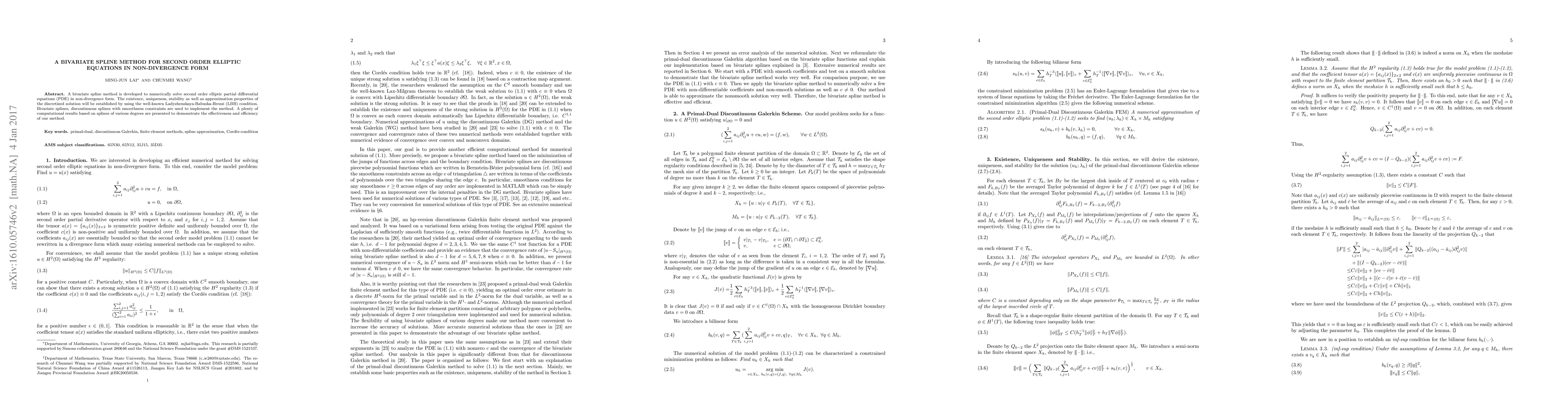 A new method for solving second-order elliptic PDEs is developed using bivariate splines, demonstrating effectiveness and efficiency through computational results.