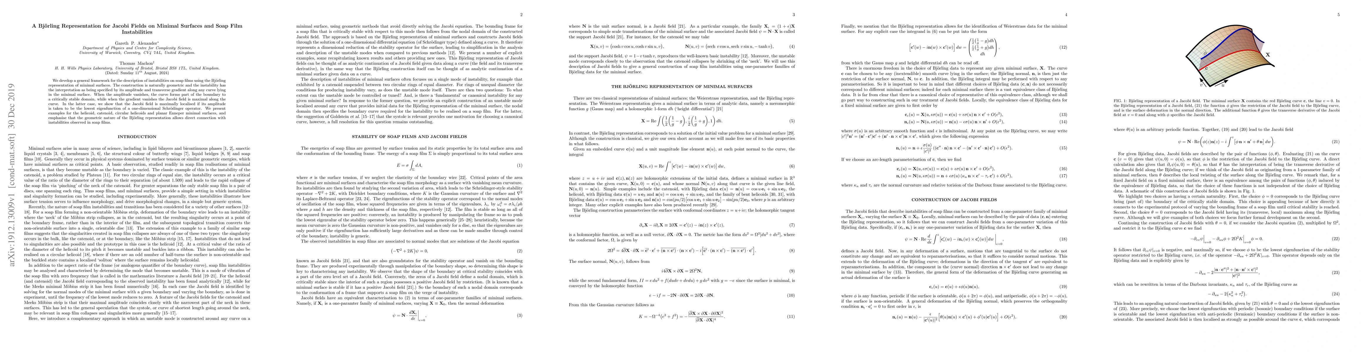 We develop a general framework for the description of instabilities on soap films using the Bj\"orling representation of minimal surfaces. The construction is naturally geometric and the instability has the interpretation as being specified by its amplitude and transverse gradient along any curve lying in the minimal surface. When the amplitude vanishes, the curve forms part of the boundary to a critically stable domain, while when the gradient vanishes the Jacobi field is maximal along the curve. In the latter case, we show that the Jacobi field is maximally localised if its amplitude is taken to be the lowest eigenfunction of a one-dimensional Schr\"odinger operator. We present examples for the helicoid, catenoid, circular helicoids and planar Enneper minimal surfaces, and emphasise that the geometric nature of the Bj\"orling representation allows direct connection with instabilities observed in soap films.