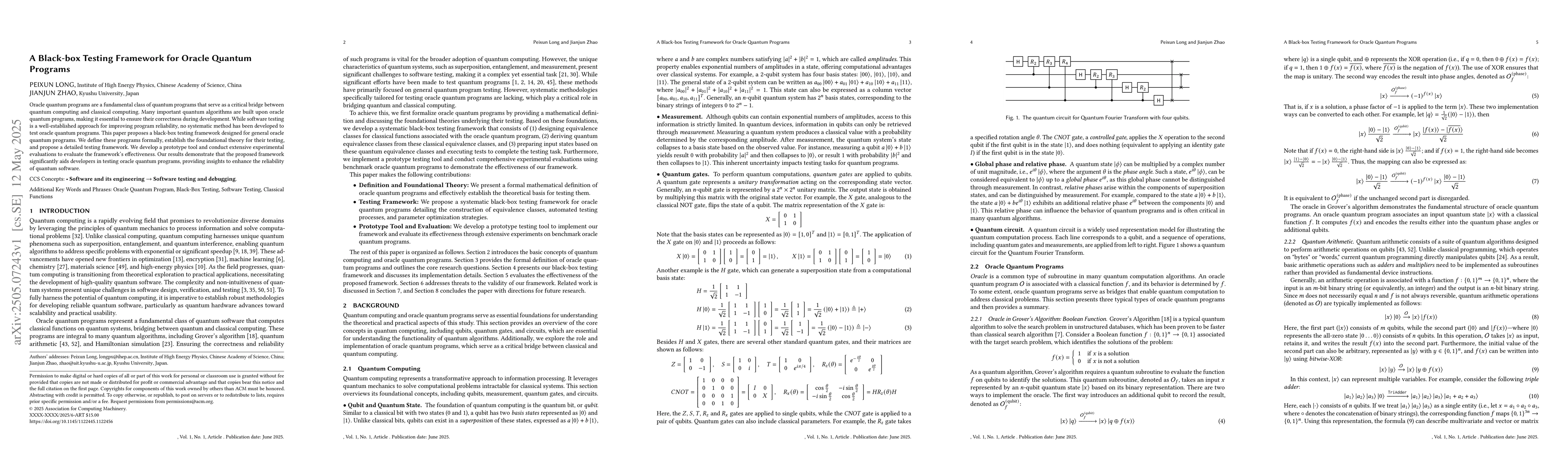 The paper proposes a black-box testing framework for oracle quantum programs, defining them formally, establishing foundational testing theory, and detailing a testing framework with a prototype tool for extensive evaluation.