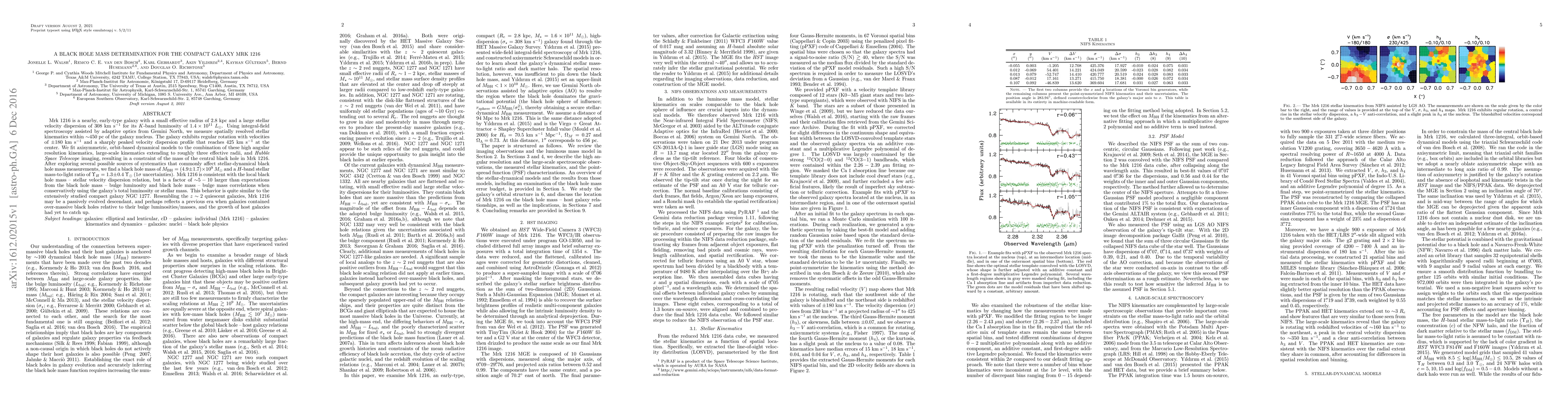 Mrk 1216 is a nearby, early-type galaxy with a small effective radius of 2.8 kpc and a large stellar velocity dispersion of 308 km/s for its K-band luminosity of 1.4x10^11 L_sun. Using integral-field spectroscopy assisted by adaptive optics from Gemini North, we measure spatially resolved stellar kinematics within ~450 pc of the galaxy nucleus. The galaxy exhibits regular rotation with velocities of \pm 180 km/s and a sharply peaked velocity dispersion profile that reaches 425 km/s at the center. We fit axisymmetric, orbit-based dynamical models to the combination of these high angular resolution kinematics, large-scale kinematics extending to roughly three effective radii, and Hubble Space Telescope imaging, resulting in a constraint of the mass of the central black hole in Mrk 1216. After exploring several possible sources of systematics that commonly affect stellar-dynamical black hole mass measurements, we find a black hole mass of (4.9\pm1.7)x10^9 M_sun and a H-band stellar mass-to-light ratio of 1.3\pm0.4 M_sun/L_sun (1-sigma uncertainties). Mrk 1216 is consistent with the local black hole mass - stellar velocity dispersion relation, but is a factor of ~5-10 larger than expectations from the black hole mass - bulge luminosity and black hole mass - bulge mass correlations when conservatively using the galaxy's total luminosity or stellar mass. This behavior is quite similar to the extensively studied compact galaxy NGC 1277. Resembling the z~2 quiescent galaxies, Mrk 1216 may be a passively evolved descendant, and perhaps reflects a previous era when galaxies contained over-massive black holes relative to their bulge luminosities/masses, and the growth of host galaxies had yet to catch up.