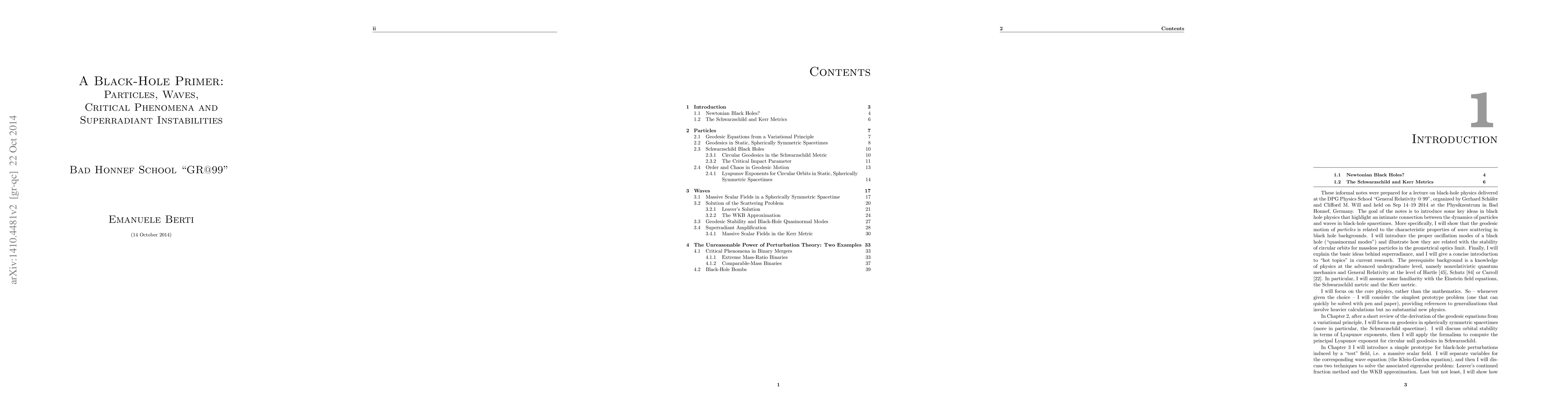 These notes were prepared for a lecture on black holes delivered at the DPG Physics School "General Relativity @ 99" (Physikzentrum Bad Honnef, Germany, September 2014). The common thread of the lecture is the relation between geodesic stability and black-hole perturbations in the geometric optics limit. Chapter 1 establishes notation and discusses a common misconception on Michell's "Newtonian black holes". Chapters 2 and 3 deal with particle dynamics and wave dynamics in black-hole spacetimes, respectively. All calculations should be simple enough that they can be done with pen and paper. Chapter 4 builds on this introduction to discuss two exciting topics in current research: critical phenomena in black-hole mergers and the black-hole bomb instability.
