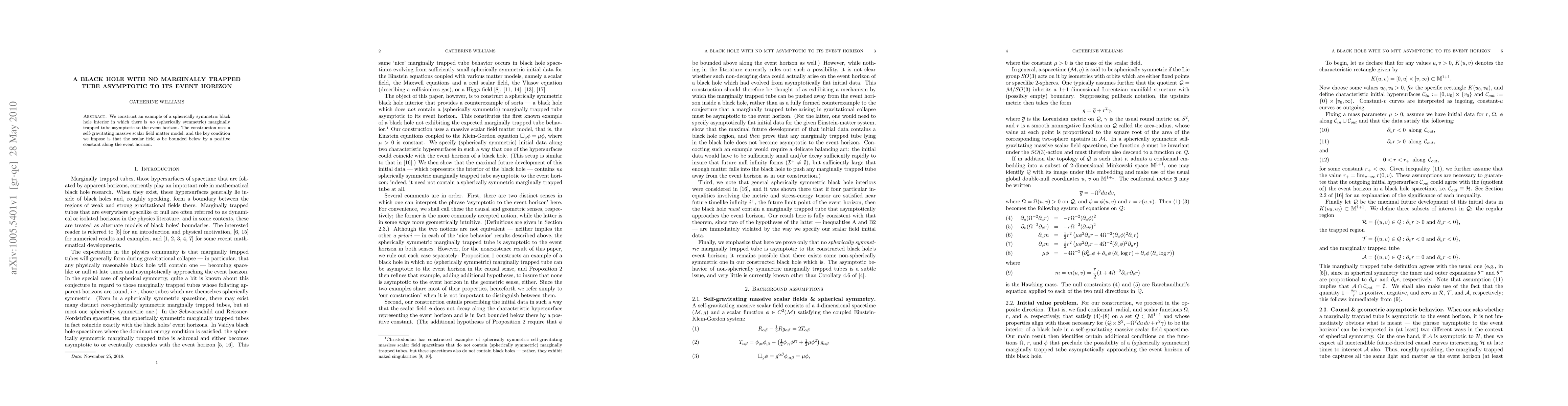 Summary: This paper presents a spherically symmetric black hole interior without a marginally trapped tube asymptotic to its event horizon, constructed using a self-gravitating massive scalar field model where the scalar field is bounded below by a positive constant along the horizon. This challenges the conventional understanding of black hole geometries.