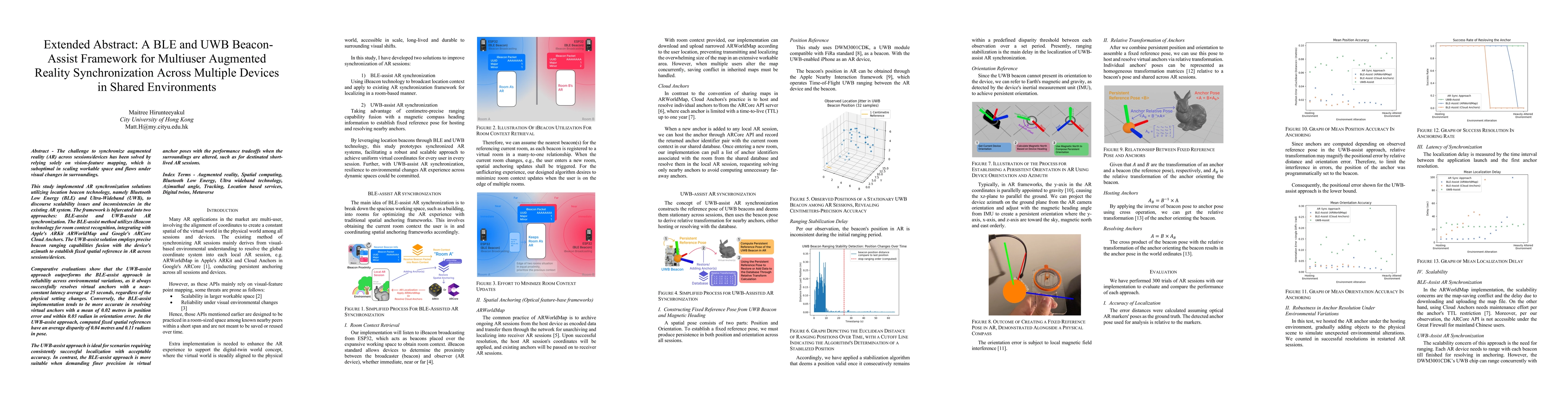 The proposed BLE and UWB beacon-assist framework for AR synchronization, which includes BLE-assist and UWB-assist methods, provides a robust solution for multiuser AR in shared environments.