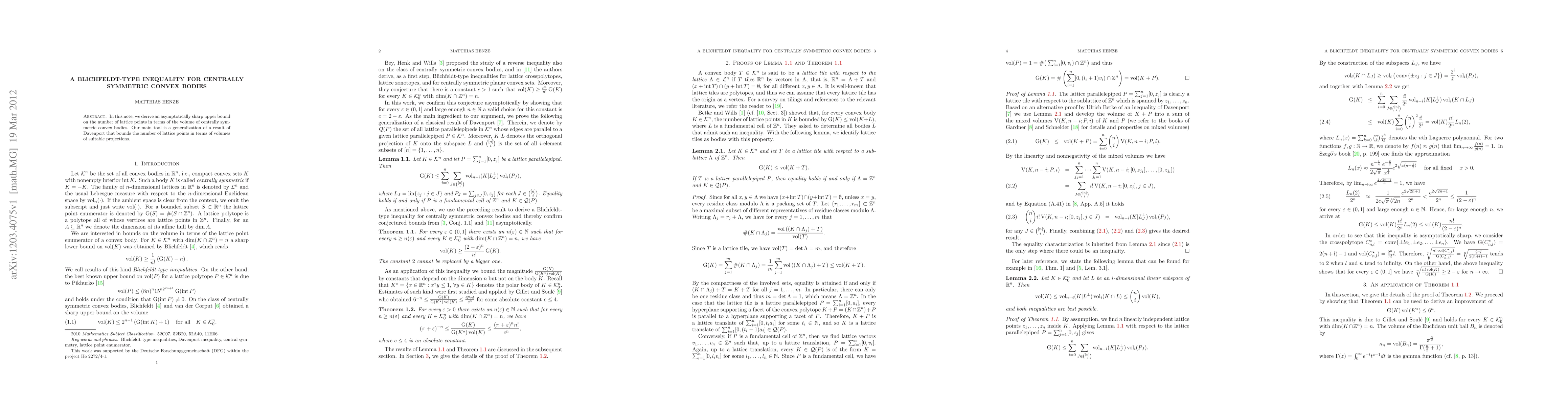 Summary: This paper establishes an asymptotically sharp upper bound on the number of lattice points within centrally symmetric convex bodies, utilizing a generalized Blichfeldt-type inequality and a projection-based approach derived from Davenport's results.