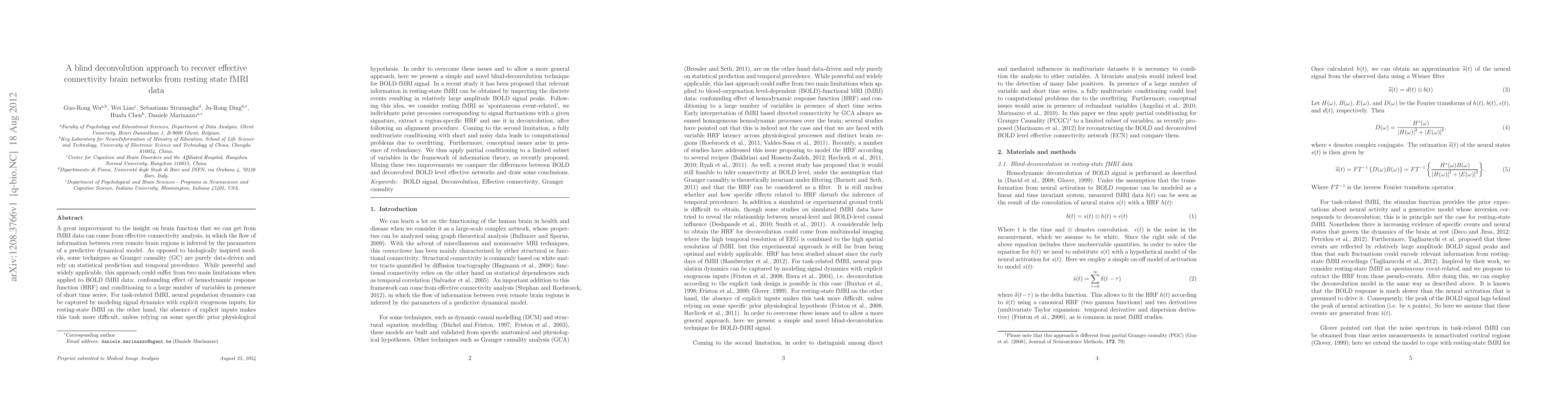 This paper introduces a blind deconvolution technique to recover effective connectivity networks from resting-state fMRI data, addressing the confounding effects of the hemodynamic response function and computational issues due to overfitting. The method employs partial conditioning to mitigate redundancy and compares effective connectivity inferred from raw and deconvolved fMRI signals.
