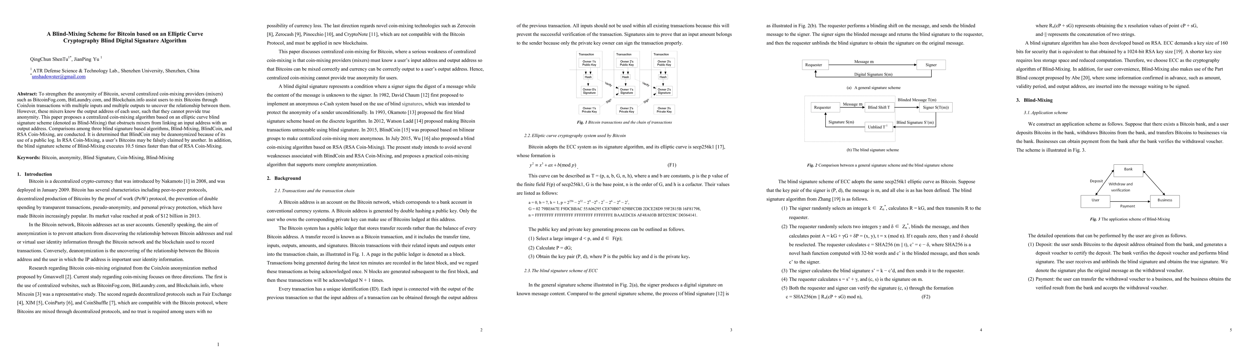 This paper proposes a centralized coin-mixing scheme using elliptic curve blind signature to enhance Bitcoin anonymity, preventing mixers from linking input and output addresses. It outperforms BlindCoin and RSA Coin-Mixing in terms of security and speed.