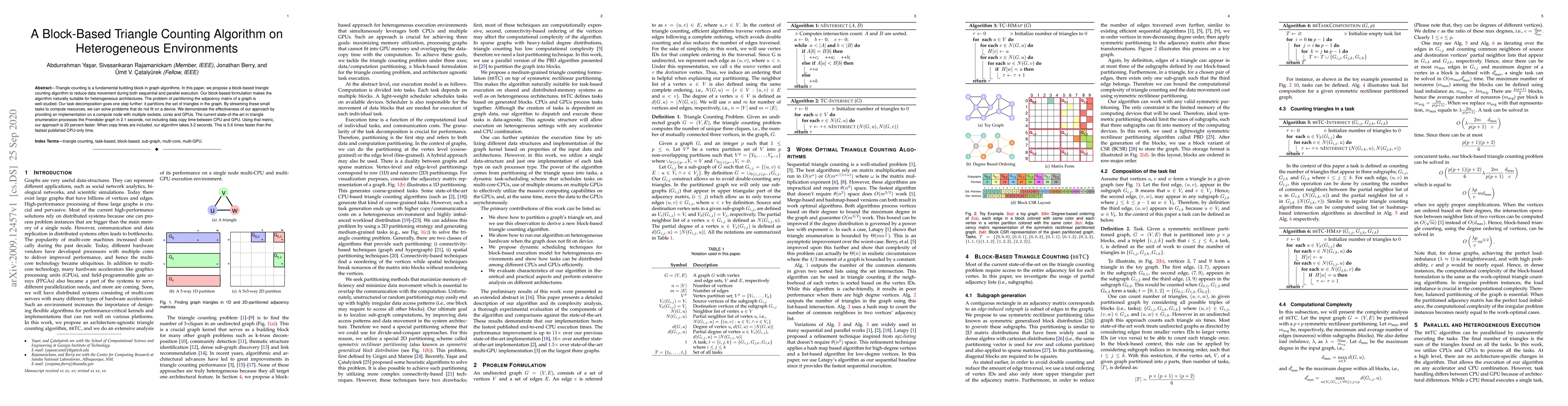 This paper introduces a block-based triangle counting algorithm designed to minimize data movement in both sequential and parallel executions, particularly suited for heterogeneous architectures. The algorithm partitions the set of triangles in a graph, enabling efficient task streaming to compute resources, and demonstrates a 20% improvement over the current state-of-the-art when excluding data copy times, and a 5.6 times improvement when including these times.