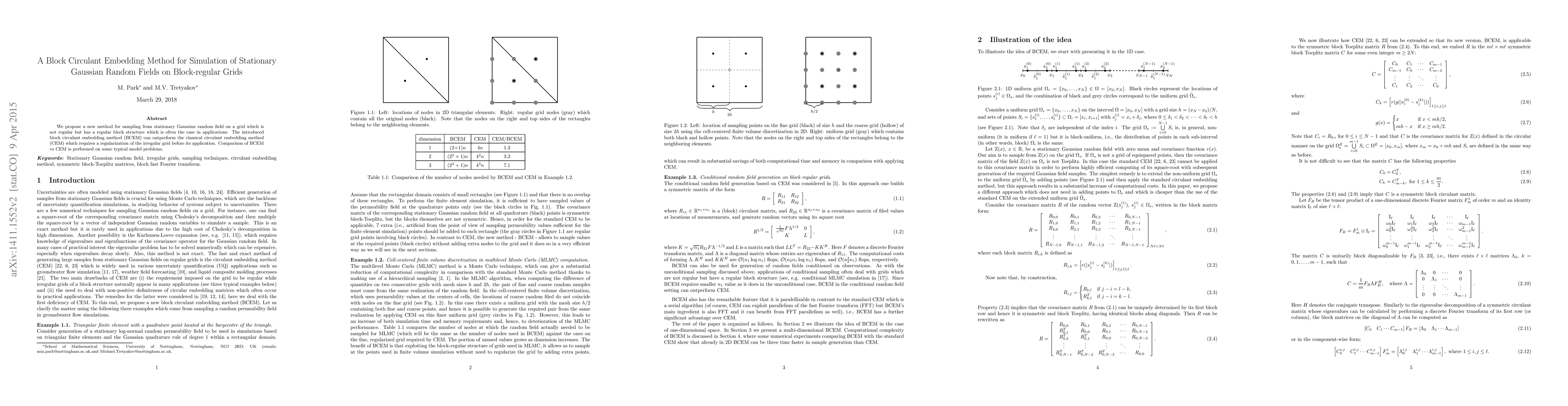 Summary: This paper introduces a block circulant embedding method (BCEM) for efficiently sampling stationary Gaussian random fields on block-regular grids, outperforming the classical circulant embedding method (CEM) by avoiding the need for grid regularization. Comparative analysis on model problems demonstrates BCEM's effectiveness.