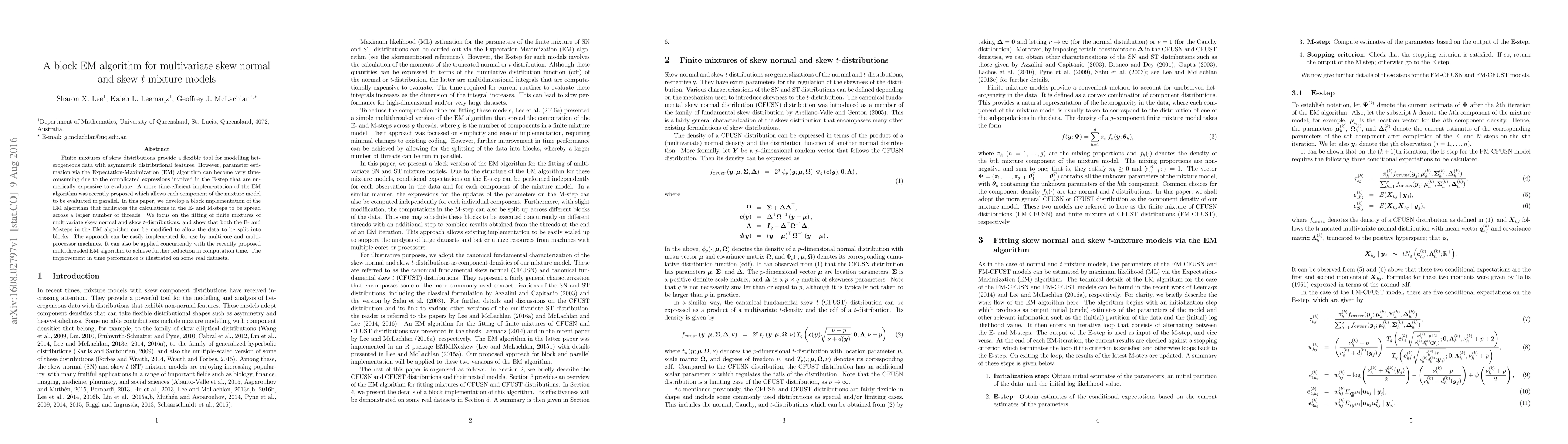 Finite mixtures of skew distributions provide a flexible tool for modelling heterogeneous data with asymmetric distributional features. However, parameter estimation via the Expectation-Maximization (EM) algorithm can become very time-consuming due to the complicated expressions involved in the E-step that are numerically expensive to evaluate. A more time-efficient implementation of the EM algorithm was recently proposed which allows each component of the mixture model to be evaluated in parallel. In this paper, we develop a block implementation of the EM algorithm that facilitates the calculations in the E- and M-steps to be spread across a larger number of threads. We focus on the fitting of finite mixtures of multivariate skew normal and skew t-distributions, and show that both the E- and M-steps in the EM algorithm can be modified to allow the data to be split into blocks. The approach can be easily implemented for use by multicore and multi-processor machines. It can also be applied concurrently with the recently proposed multithreaded EM algorithm to achieve further reduction in computation time. The improvement in time performance is illustrated on some real datasets.