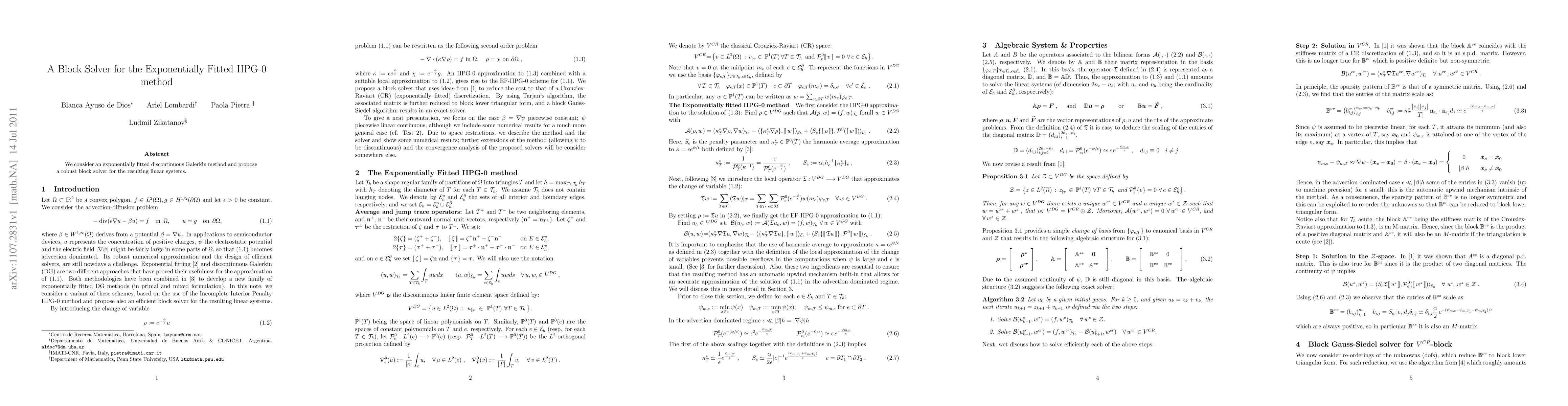 We consider an exponentially fitted discontinuous Galerkin method and propose a robust block solver for the resulting linear systems.