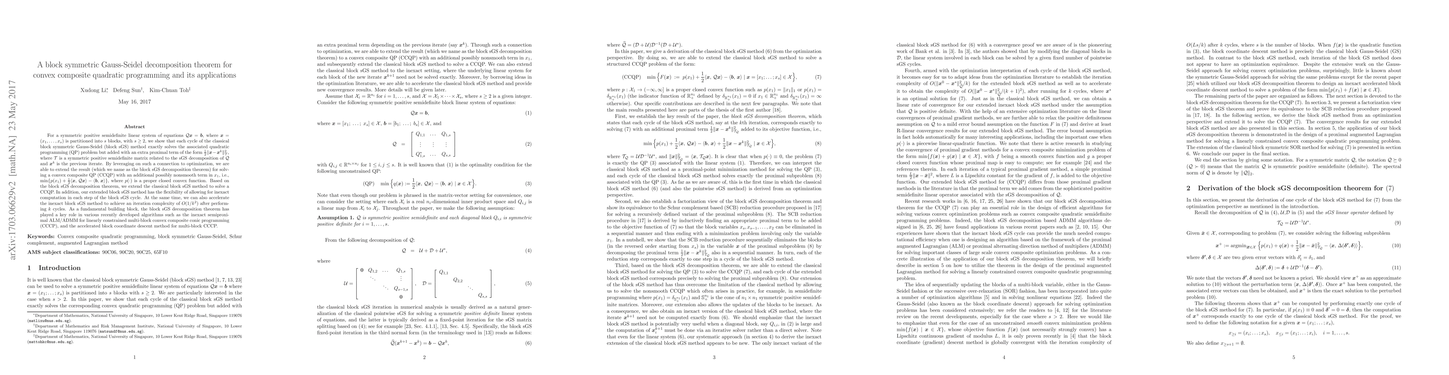 For a symmetric positive semidefinite linear system of equations $\mathcal{Q} {\bf x} = {\bf b}$, where ${\bf x} = (x_1,\ldots,x_s)$ is partitioned into $s$ blocks, with $s \geq 2$, we show that each cycle of the classical block symmetric Gauss-Seidel (block sGS) method exactly solves the associated quadratic programming (QP) problem but added with an extra proximal term of the form $\frac{1}{2} \| {\bf x}-{\bf x}^k \|_{\mathcal T}^2$, where ${\mathcal T}$ is a symmetric positive semidefinite matrix related to the sGS decomposition and ${\bf x}^k$ is the previous iterate. By leveraging on such a connection to optimization, we are able to extend the result (which we name as the block sGS decomposition theorem) for solving a convex composite QP (CCQP) with an additional possibly nonsmooth term in $x_1$, i.e., $\min\{ p(x_1) + \frac{1}{2}\langle {\bf x},\, \mathcal{Q} {\bf x} \rangle -\langle {\bf b},\, {\bf x}\rangle\}$, where $p(\cdot)$ is a proper closed convex function. Based on the block sGS decomposition theorem, we are able to extend the classical block sGS method to solve a CCQP. In addition, our extended block sGS method has the flexibility of allowing for inexact computation in each step of the block sGS cycle. At the same time, we can also accelerate the inexact block sGS method to achieve an iteration complexity of $O(1/k^2)$ after performing $k$ block sGS cycles. As a {fundamental} building block, the block sGS decomposition theorem has played a key role in various recently developed algorithms such as the inexact semiproximal {ALM/ADMM} for linearly constrained multi-block convex composite conic programming (CCCP), and the accelerated block coordinate descent method for multi-block CCCP.