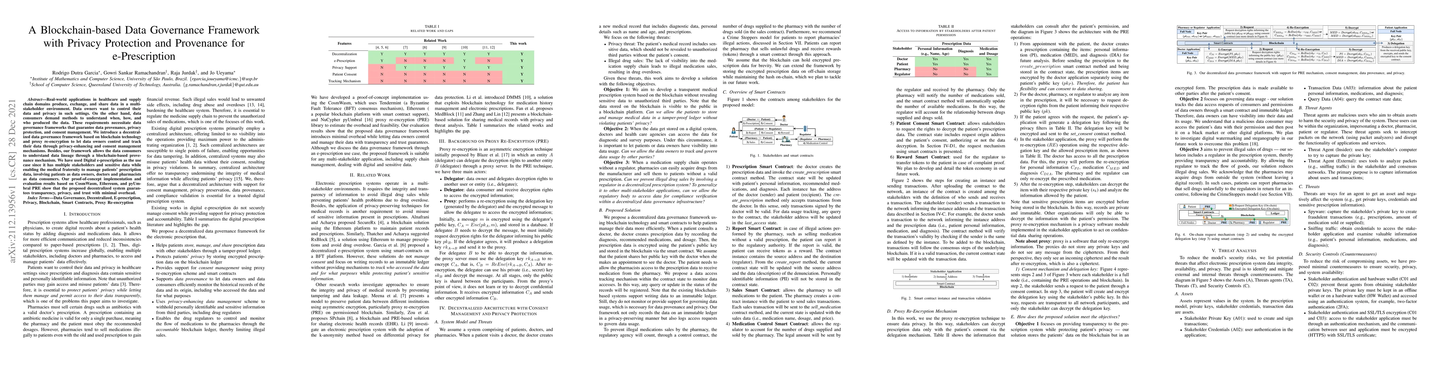 This paper proposes a blockchain-based data governance framework for e-prescriptions that ensures data privacy, consent management, and provenance. The framework leverages blockchain and proxy re-encryption to enable data owners to control their data while providing data consumers with transparent and traceable data lineage.