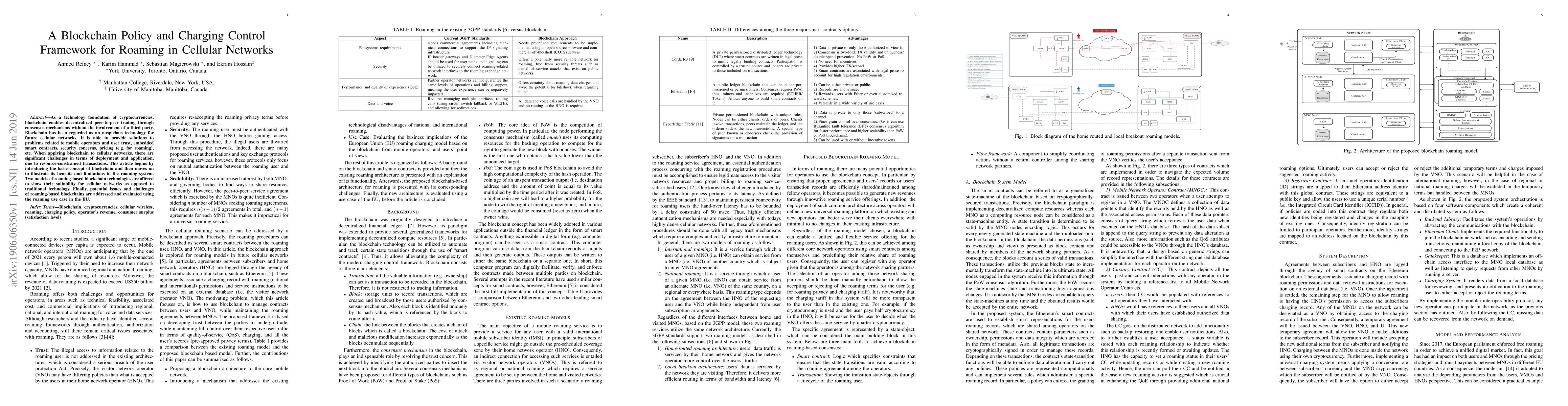 As a technology foundation of cryptocurrencies, blockchain enables decentralized peer-to-peer trading through consensus mechanisms without the involvement of a third party. Blockchain has been regarded as an auspicious technology for future cellular networks. It is able to provide solutions to problems related to mobile operators and user trust, embedded smart contracts, security concerns, pricing (e.g. for roaming), etc. When applying blockchain to cellular networks, there are significant challenges in terms of deployment and application, due to resource-constrained transactions. This article begins by introducing the basic concept of blockchain and then moves on to illustrate its benefits and limitations in the roaming system. Two models of roaming-based blockchain technologies are offered to show their suitability for cellular networks as opposed to traditional technology. Finally, potential issues and challenges of roaming-based blockchains are addressed and evaluated using the roaming use case in the EU.