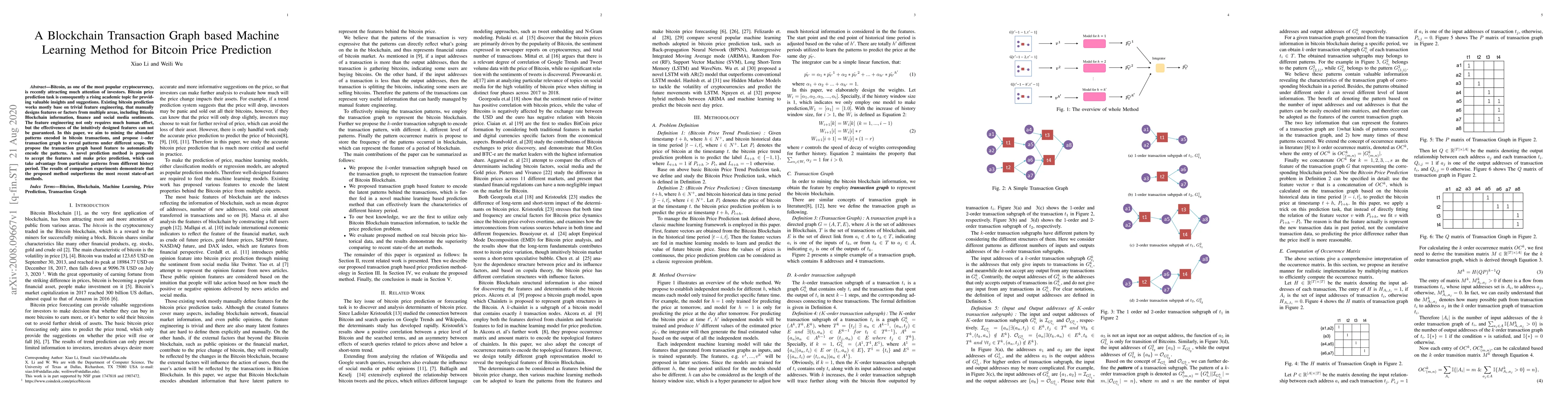 This paper proposes a novel machine learning method for Bitcoin price prediction based on a k-order transaction graph that automatically encodes patterns from Bitcoin transaction data. The method outperforms existing state-of-the-art techniques by leveraging transaction graph features to capture intricate patterns across different historical periods.