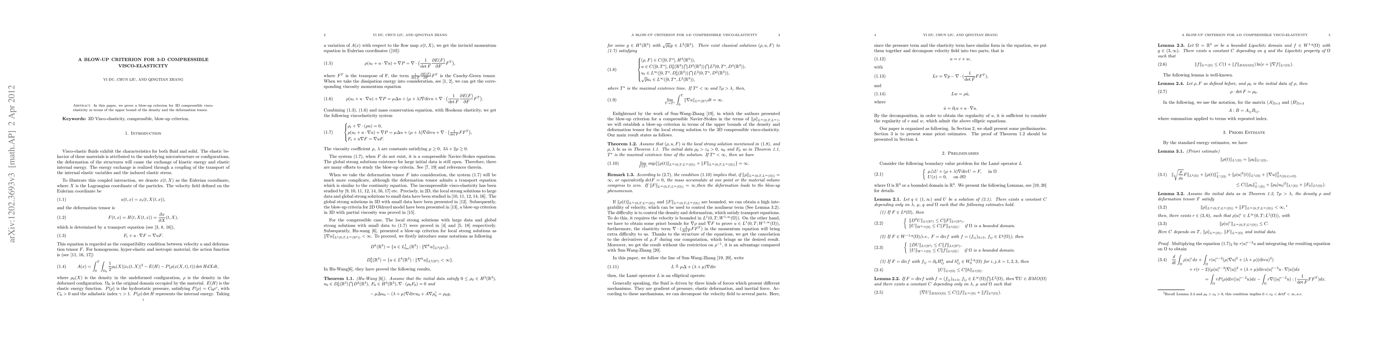 This paper establishes a blow-up criterion for 3D compressible visco-elasticity, linking the conditions for solution breakdown to the upper bounds of density, deformation tensor, and its gradient. The analysis leverages a cancellation in higher-order derivatives to achieve the desired results.