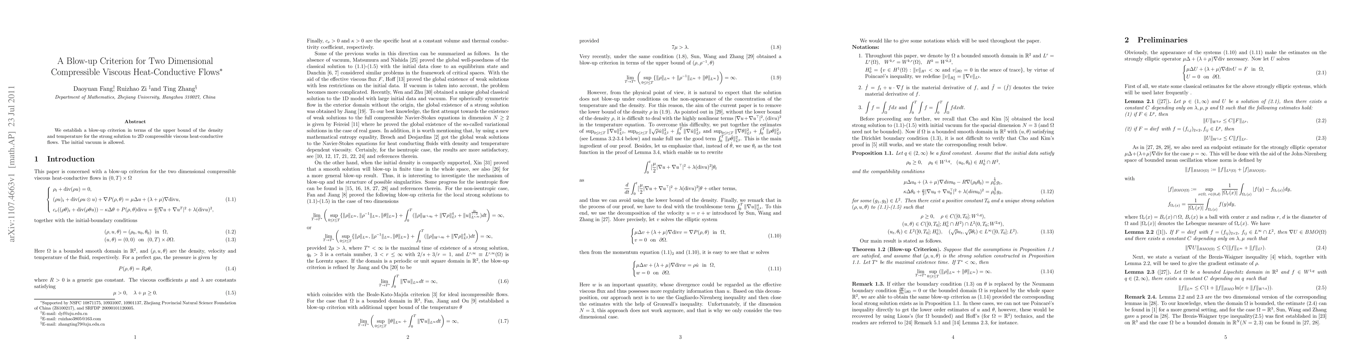 Summary: This paper establishes a blow-up criterion for 2D compressible viscous heat-conductive flows, indicating that the solution may become unbounded if the density and temperature exceed certain thresholds, even when the initial state includes a vacuum.